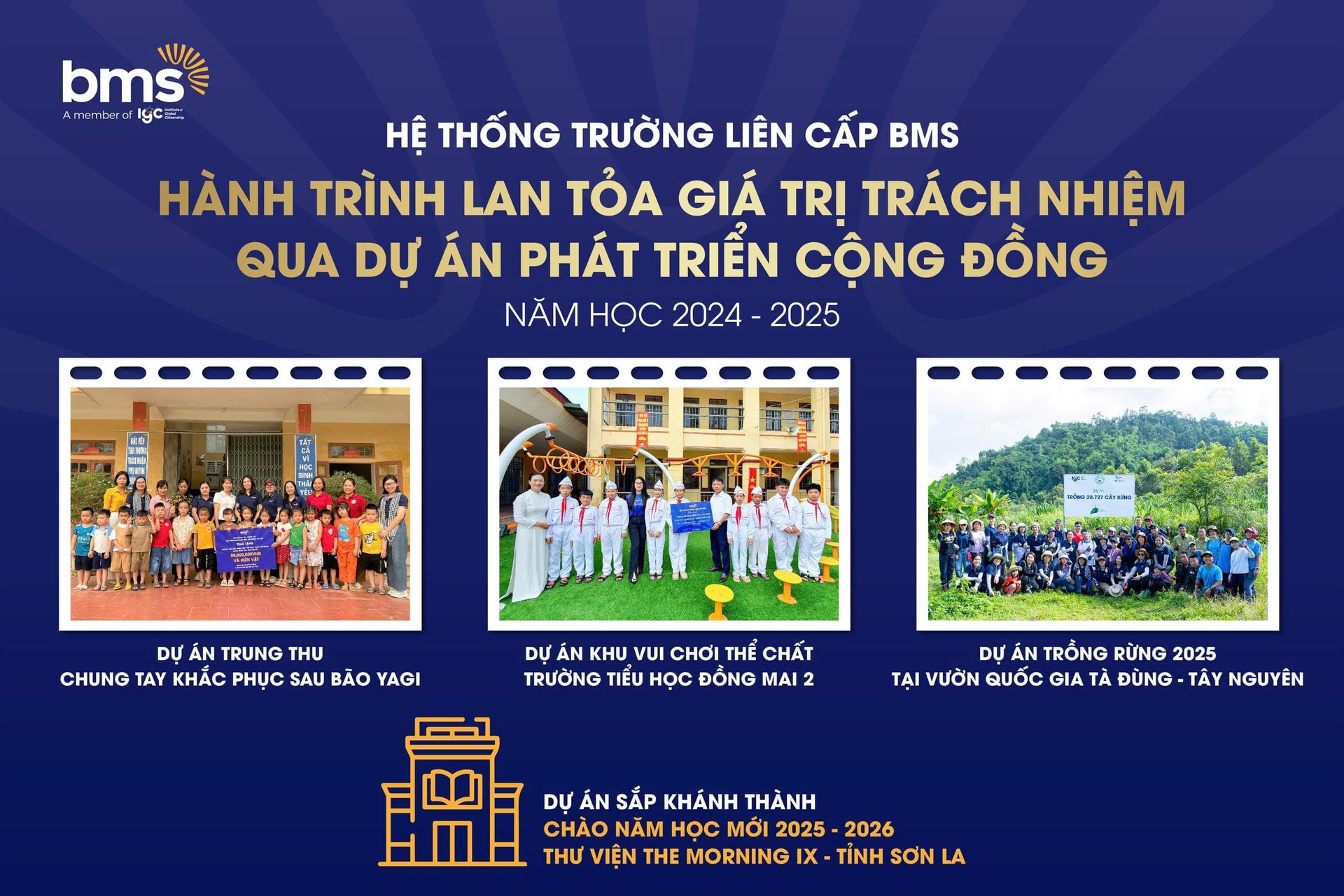 Mỗi dự án cộng đồng trong năm học qua là một phần trong hành trình giáo dục toàn diện mà BMS kiên định theo đuổi. Trên hành trình ấy, học sinh được sống trong môi trường học tập giàu tính trải nghiệm, thầy cô đóng vai trò kết nối và định hướng bằng tâm huyết, cha mẹ đồng hành bằng sự tin tưởng và sẻ chia. Tinh thần hợp lực trong từng hoạt động đã góp phần hình thành ý thức trách nhiệm với bản thân và với cộng đồng cho mỗi học sinh BMS.
