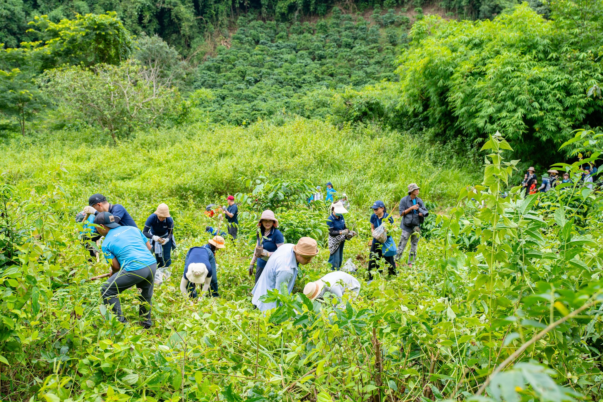 Trong hành trình trồng rừng tại Vườn quốc gia Tà Đùng, đoàn tình nguyện viên cùng 10 thầy cô giáo BMS đã vượt rừng, lội suối, mang theo những bầu cây do cộng đồng BMS quyên góp. Thời tiết nắng gắt, địa hình dốc và trơn trượt nhưng không làm giảm đi tinh thần nhiệt huyết và sự quyết tâm của đoàn.