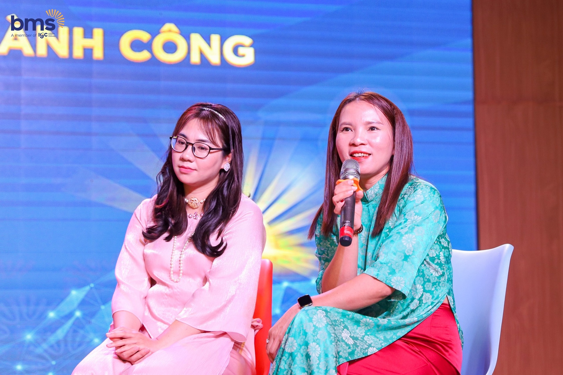 Cô Lại Thị Cẩm Anh –Phòng Tuyển sinh TCT chia sẻ về năng lực khai thác thị trường và quản trị cảm xúc khách hàng: "BMS có tầm nhìn sẽ trở thành Hệ thống giáo dục hàng đầu phía Bắc một hệ sinh thái phát triển. Muốn thành công, mỗi thành viên cần có năng lực thấu hiểu khách hàng, phát triển tư duy chiến lược và kết nối mạnh mẽ."Cô Cẩm Anh tin tưởng năng lực tìm kiếm và kết nối thị trường chính là yếu tố then chốt để BMS tiếp tục mở rộng và phát triển, đồng thời tạo ra sự tín nhiệm và gắn kết với khách hàng.