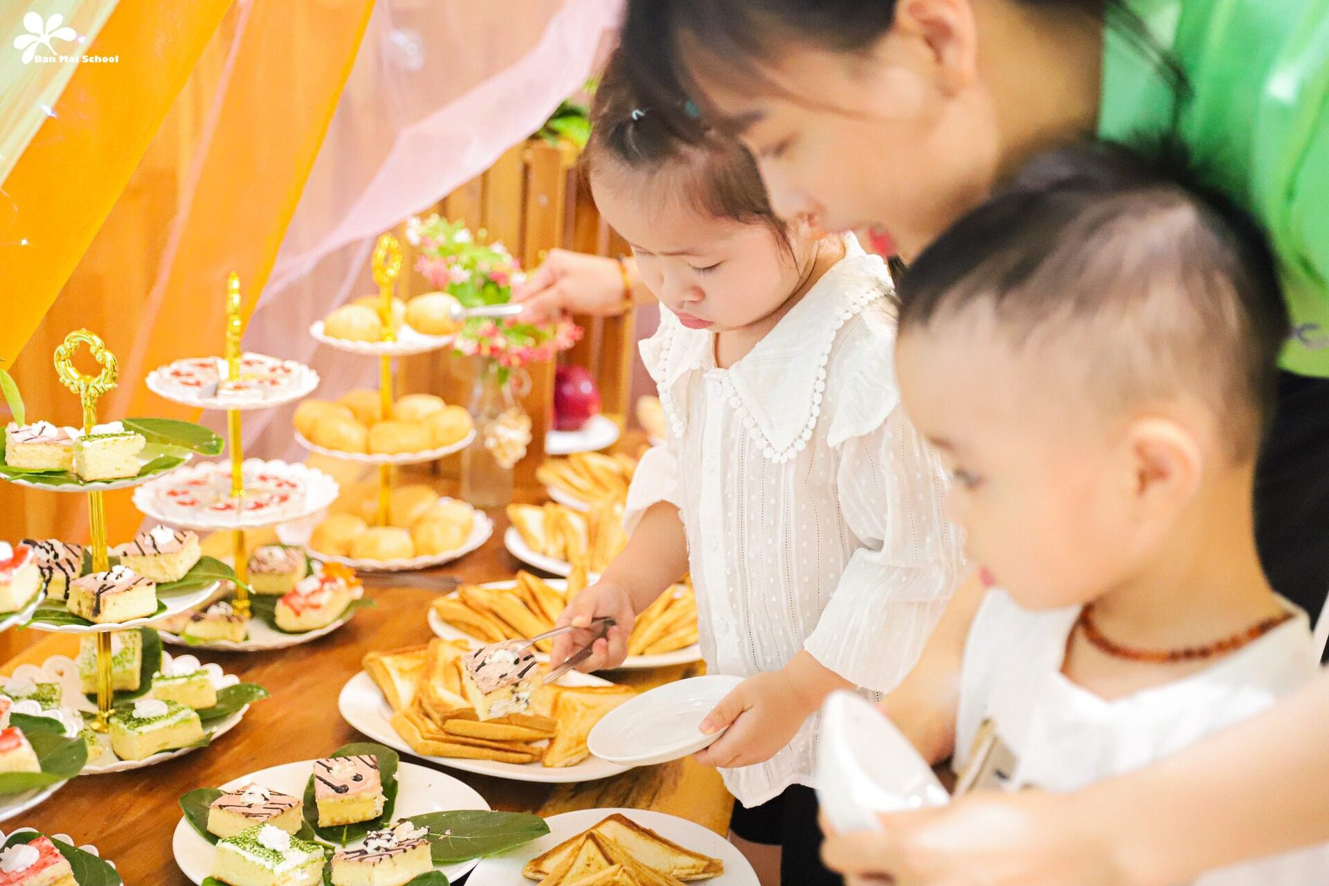 Thấu hiểu tâm lý trẻ mầm non với xu hướng độc lập làm mọi việc theo ý mình, các cô giáo Ban Mai luôn nỗ lực sáng tạo, trao cơ hội cho các con trải nghiệm những hình thức ăn đặc sắc theo “concept” như Tiệc Buffet, Tiệc Bento, Tiệc bánh bể bơi…