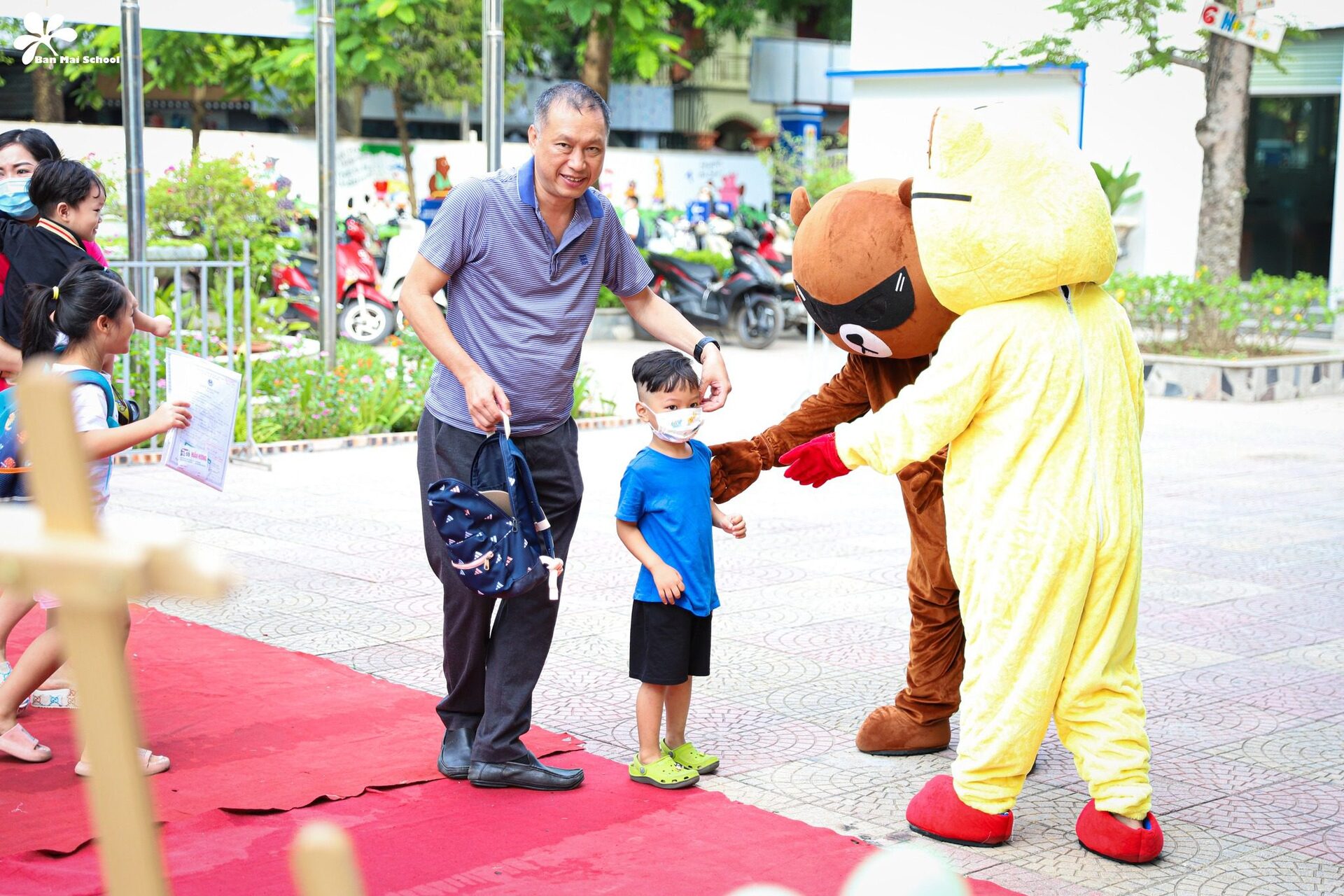 BMSers háo hức khi được thầy cô cùng các nhân vật hoạt hình ngộ nghĩnh chào đón từ cổng trường. Lon ton theo ba mẹ lên lớp, các con càng hạnh phúc hơn nữa trước sự chuẩn bị chu đáo của các cô giáo và những không gian được thay áo mới đẹp lung linh.