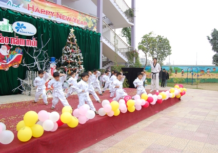 8h30 Chương trình nghệ thuật ” Đón Noel và năm mới ” bắt đầu. Sự chuẩn bị công phu của các cô giáo và các diễn viên nhí của trường đã đem đến những bất ngờ thú vị và bạn nào cũng phải trầm trồ khen ngợi. Dưới đây là một số hình ảnh về Lễ Noel và đón Chào năm mới