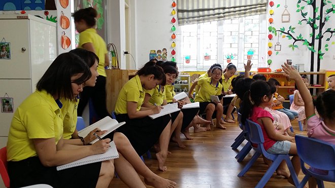 Để tạo nên 1 tác phẩm âm nhạc hay, ngoài ca từ và giai điệu mà nhạc sĩ sáng tác thì việc thể hiện những bài hát cũng là yếu tố quan trọng góp phần tạo nên giá trị của bài hát. Các cô giáo dạy cho trẻ không chỉ thuộc lời, thuộc giai điệu của bài hát, hiểu được ý nghĩa của ca từ mà còn còn dạy cho trẻ biết vận động theo bài nhạc. Những động tác cơ thể khéo léo uyển chuyển và cảm xúc trên khuôn mặt đã tạo nên những hình ảnh minh họa đẹp cho bài hát.