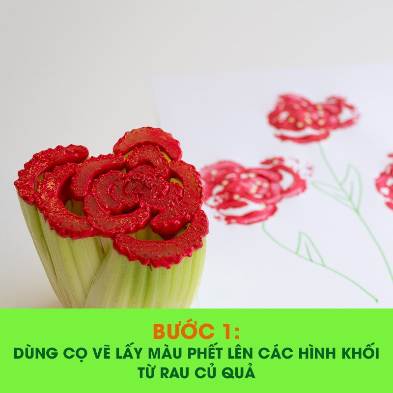 Bước 2: Dùng rau củ đã có màu in lên giấy A4;