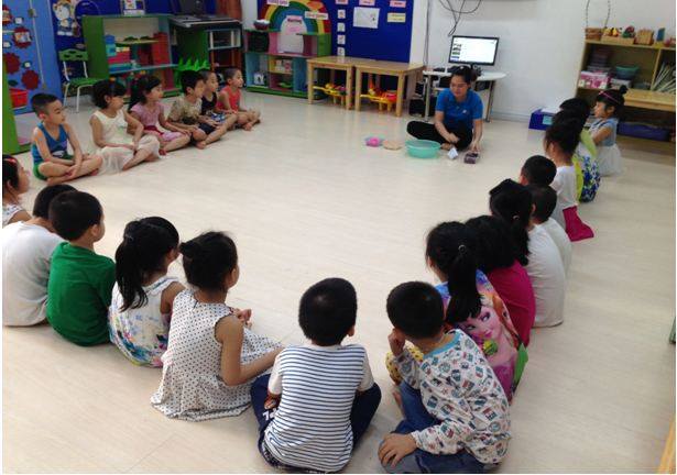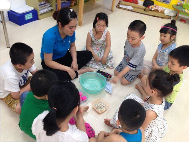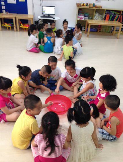 Chúng tớ được chia về thành các nhóm nhỏ và còn được cô giáo chuẩn bị cho một chậu nước rất là to.