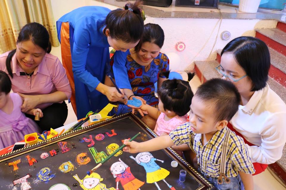 Các con tcùng bố mẹ thể hiện tình cảm của mình bằng những bức tranh đầy ý nghĩa