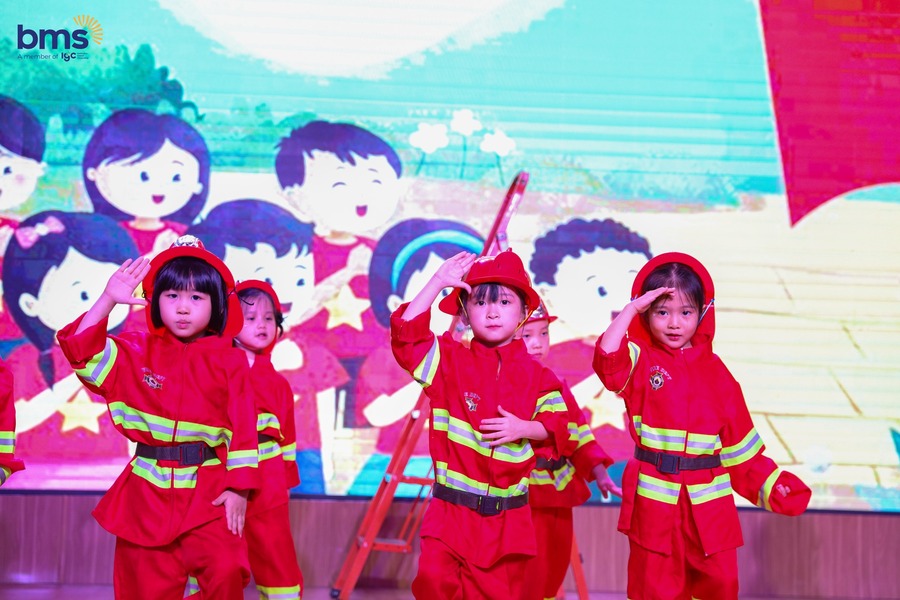 BMSers nhí trổ tài đóng vai lính cứu hỏa trên sân khấu