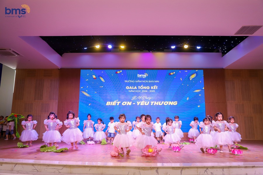 Gala Tổng kết năm học này thực sự là nơi hội tụ tài năng và những màn trình diễn ấn tượng. 15 tiết mục nghệ thuật rực rỡ sắc màu đã được các BMSers thể hiện, vẽ nên bức tranh sinh động về sự trưởng thành của hơn 500 bạn nhỏ. Từ tình yêu quê hương, lòng biết ơn cha mẹ, thầy cô đến những thông điệp ý nghĩa về bảo vệ môi trường... tất cả đều được các con truyền tải một cách chân thật và đầy tự tin.