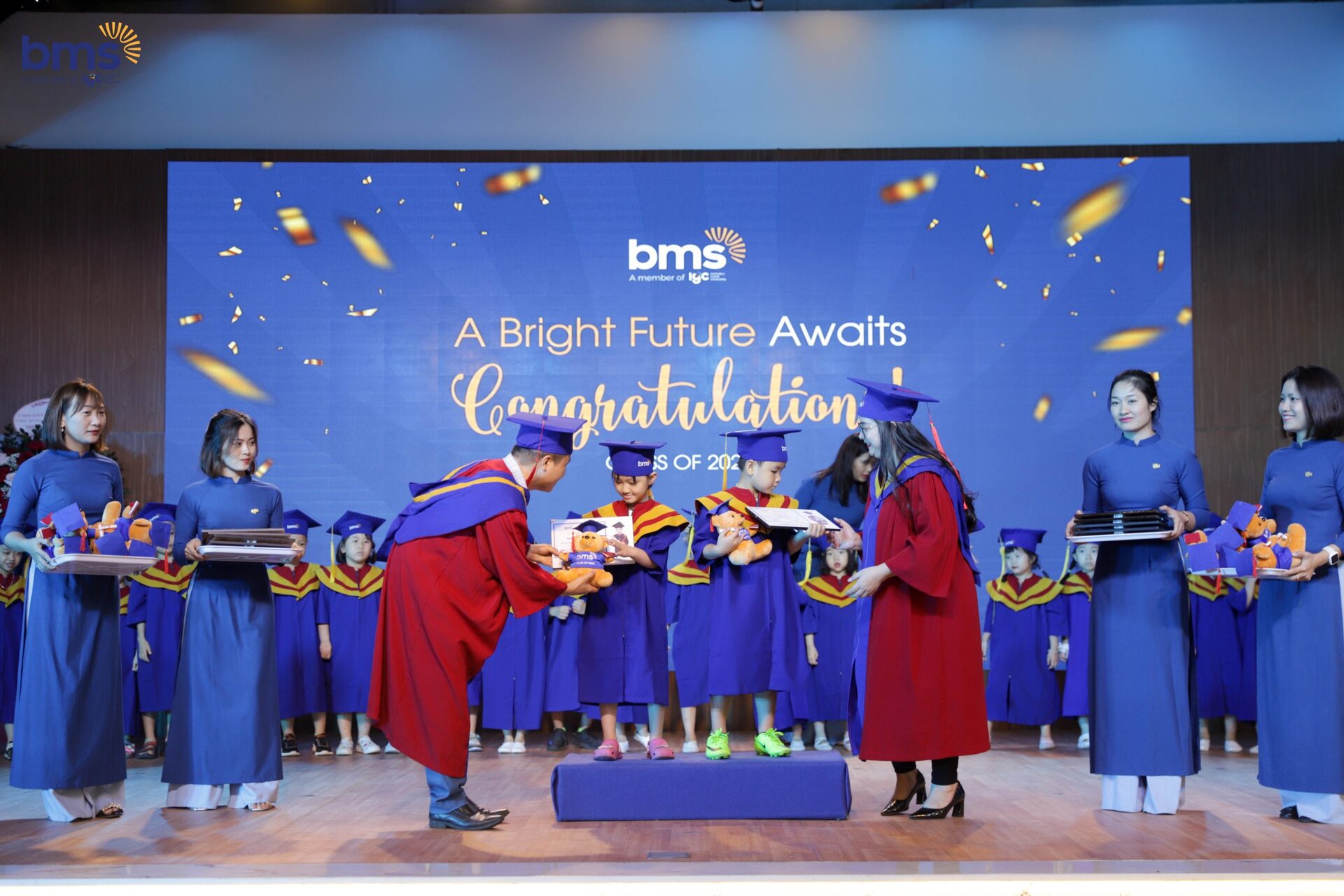 Cũng tại đây các con đã được nói lời tri ân tới thầy cô, ba mẹ với những người thân yêu đã vun đắp cho sự trưởng thành của con trong suốt hành trình học tập tại BMS. Các cô giáo đã vô cùng xúc động, nghẹn ngào – những giọt nước mắt thay cho tình cảm, thay cho sự hạnh phúc khi chứng kiến các con trưởng thành hơn mỗi ngày.