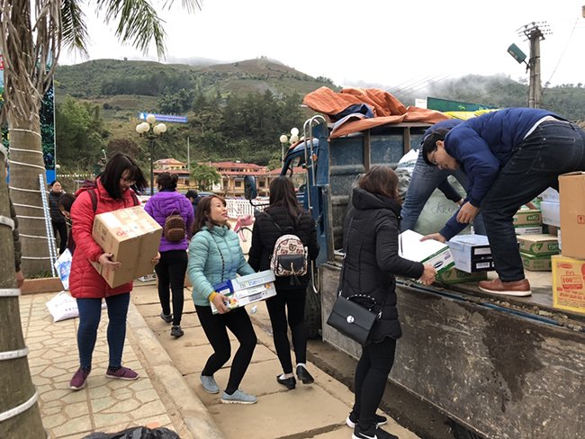 Sáng ngày 18/1, trường Mầm non Ban Mai đã trao tận tay 185 chiếc áo phao mới, 185 bộ khăn mũ len, 555 đôi tất, 58 thùng sữa tươi, bánh kẹo, giầy dép và nhiều vật phẩm cần thiết khác cho các em nhỏ ở trường Mầm non Chế Tạo.