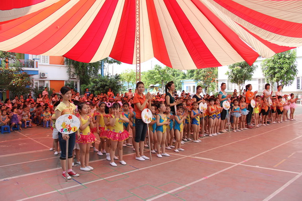 Mở đầu chương trình là màn trình diễn Võ thuật của các bé rất ấn tượng, sau đó là tiết mục nhảy latinh của các bạn khối MGL làm cả sân trường trở lên sôi động.