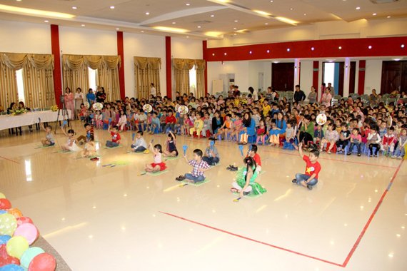 Bầu không khí hồi hộp chờ đợi kết quả từ phía ban giám khảo như được xua tan bởi các tiết mục văn nghệ đặc sắc mà các bé trường mầm non Ban Mai dành tặng các đội thi và khan giả.
