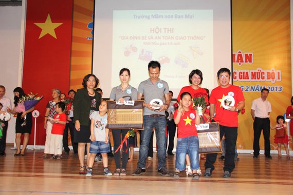 Với mong muốn giúp trẻ ôn luyện một số kiến thức đơn giản về phương tiện và luật lệ giao thông đường bộ, đồng thời tạo sân chơi bổ ích cho cha mẹ và các con học sinh được cùng nhau vui chơi, cùng nhau chia sẻ và thể hiện tài năng, tinh thần đoàn kết trong gia đình. 8h30 phút ngày 29/3/2013, trường Mầm non Ban Mai vui mừng tổ chức hội thi ” Gia đình bé và An toàn giao thông”. 14 đội thi đến từ 14 lớp thuộc hai khối mẫu giáo Nhỡ và mẫu giáo Lớn cùng nhau trải qua 4 phần thi gay cấn để chung tay thể hiện thông điệp “An toàn giao thông không của riêng ai”, “Đằng sau tay lái là gia đình người thân” mà nhà trường muốn gửi gắm. Cuộc thi thu hút sự chú ý của nhiều vị khách quý, cha mẹ phụ huynh cũng như các Cơ quan Báo chí –Đài truyền hình đã đến đưa tin.