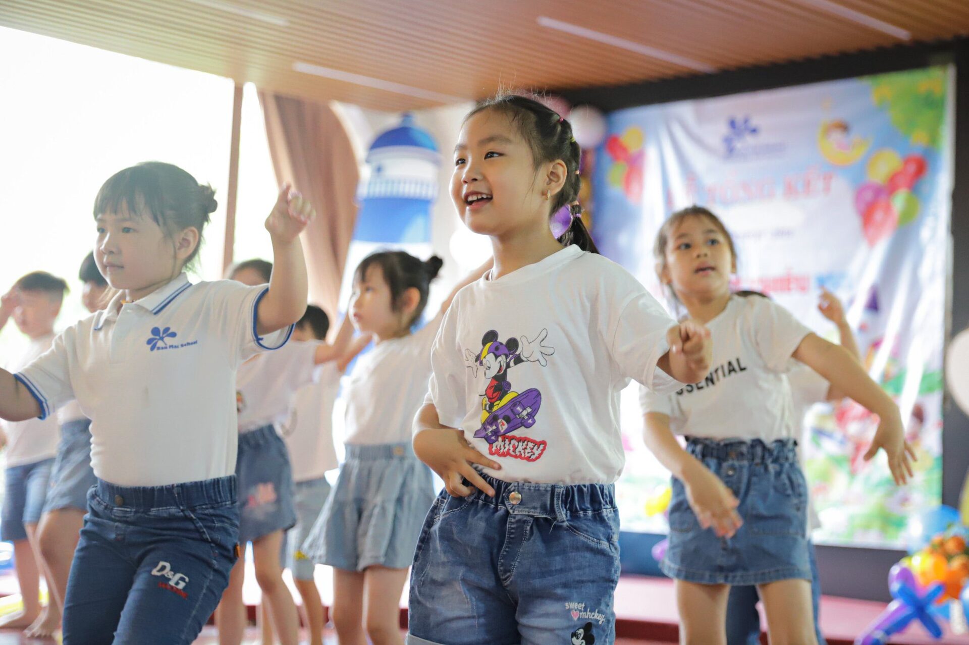 BMSers từ khắp các khối Donald, Mickey, Kitty, Misa đã lần lượt trình diễn những tiết mục đặc sắc trên sân khấu trong sự cổ vũ nhiệt tình của các cô giáo và cha mẹ thân yêu. Các con háo hức đón xem các bạn nhảy múa trên sân khấu, đánh dấu những kỷ niệm đẹp kết thúc một năm học vô cùng đặc biệt.