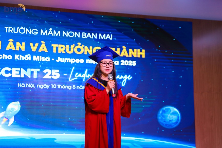 Khi tháng 5 gõ cửa với nắng vàng rực rỡ, cũng là lúc các BMSers khối Misa và Jumpee chính thức khép lại hành trình tuổi thơ dưới mái trường Mầm non Ban Mai. Lễ trưởng thành năm nay mang chủ đề “Ascent 2025 – Leading the Change” là lời chào tạm biệt tuổi mầm non và cũng là tuyên ngôn đầy cảm hứng về tinh thần dám thay đổi, dám tiên phong.