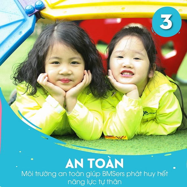 BMSers được rèn luyện trong môi trường an toàn cả về thể chất lẫn tinh thần để phát huy hết năng lực tự thân. BMSers được trải nghiệm hoạt động Gymkids trong không gian ngôn ngữ tiếng Anh để phát triển năng lực tư duy toàn cầu. Mỗi bữa ăn tại Ban Mai đều đảm bảo dinh dưỡng, an toàn; đồng thời, BMSers cũng được khám sức khỏe định kỳ 3 lần/năm.
