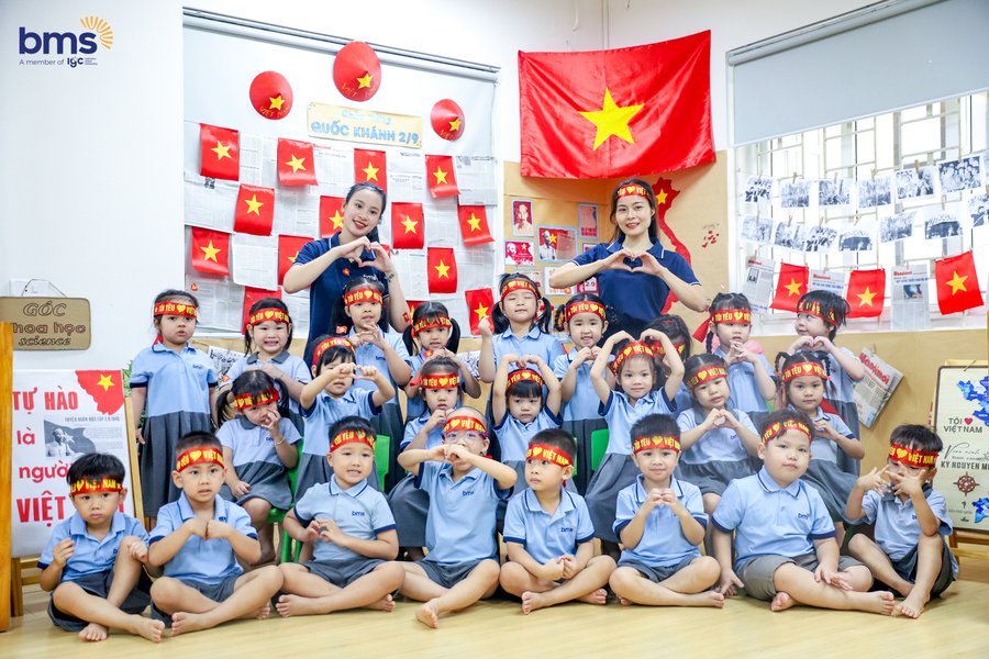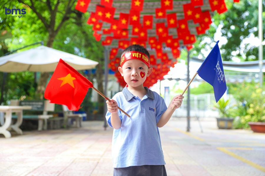 Các BMSer nhí, dù còn nhỏ đã có cơ hội chạm vào “hơi thở” thiêng liêng của ngày Lễ trọng đại dân tộc qua những hoạt động ý nghĩa. Cùng cô giáo làm cờ, dán sao, cắt chữ, tô màu những biểu tượng đặc trưng của đất nước, các con như trở thành những “nghệ nhân nhí” sáng tạo nên sắc màu Tổ quốc. Hòa cùng không gian là tiếng hát “Ai yêu Bác Hồ Chí Minh hơn thiếu niên nhi đồng” trong trẻo, đầy cảm xúc được ngân vang. Những khoảnh khắc ấy chính là cách tình yêu quê hương được gieo hạt trong mỗi trái tim.