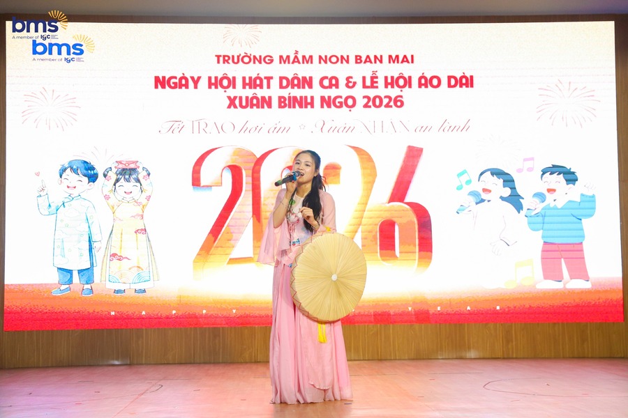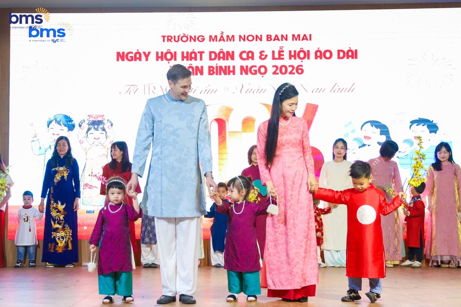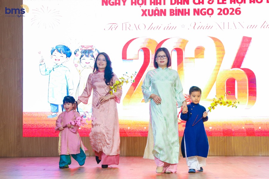 Chuỗi hoạt động Tết Bính Ngọ 2026 mang đến nhiều cảm xúc đẹp. Tiếng hát dân ca ngọt ngào, tà áo dài thướt tha trong gió xuân đến chiếc bánh chưng xanh ấm áp, hội chợ xuân rộn ràng sắc màu.Tết không chỉ là một ngày lễ. Tết là những khoảnh khắc yêu thương được cùng nhau tạo nên. Ở BMS Kiddy, Tết được nghe bằng giai điệu và Tết được cảm nhận bằng trái tim.