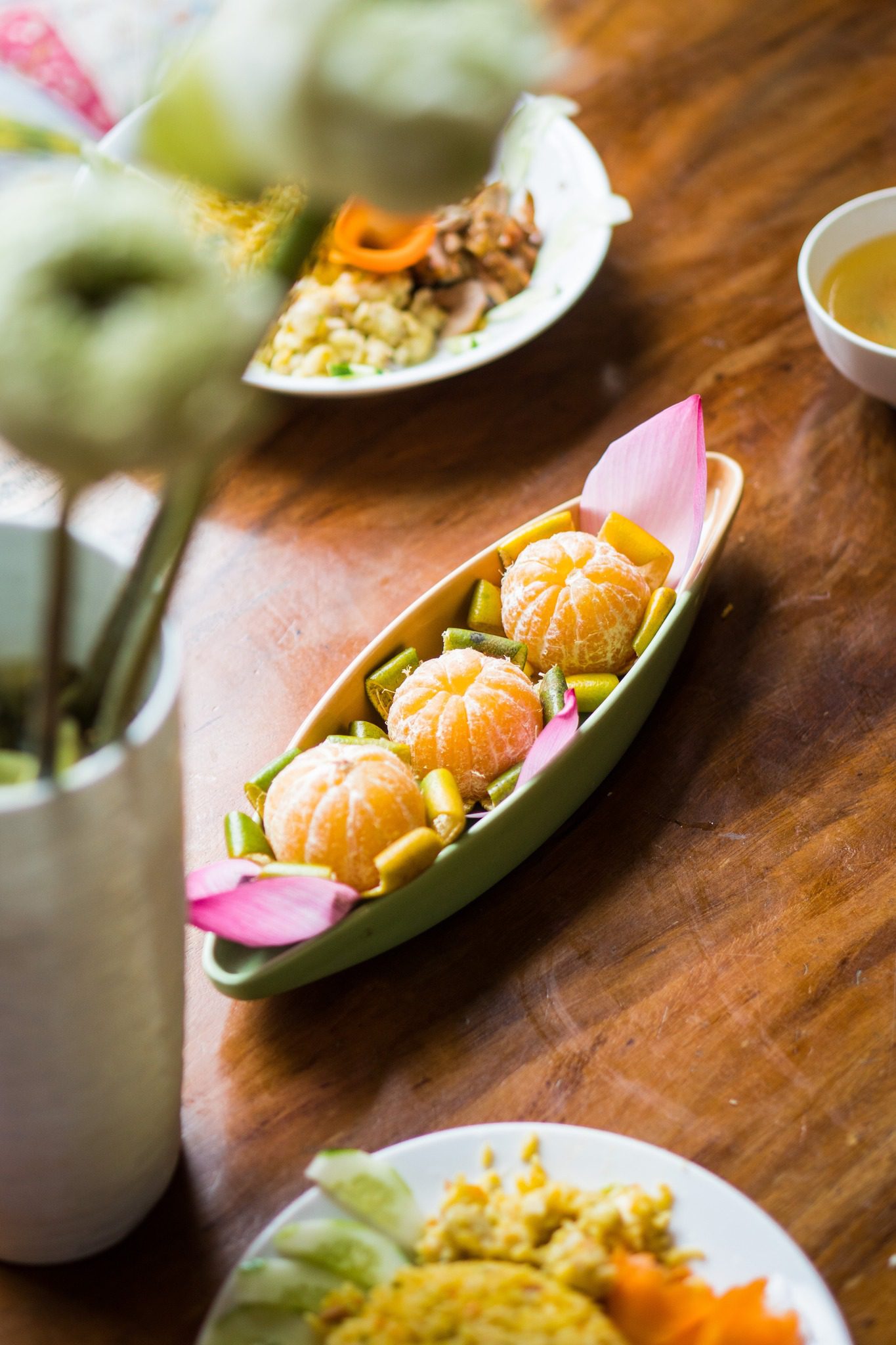 Thực đơn tiệc sen đặc sắc với món Cơm gà hạt sen và Canh ngũ sắc đã mang đến một bữa ăn với đủ chất dinh dưỡng cùng hương vị độc đáo cho các em bé Misa. Đặc biệt, các bạn nhỏ được tự tay sắp xếp bàn ghế, trang trí bàn tiệc, lắng nghe cô giáo giới thiệu về ý nghĩa của Quốc hoa và thành phần của từng món ăn trong bữa tiệc.