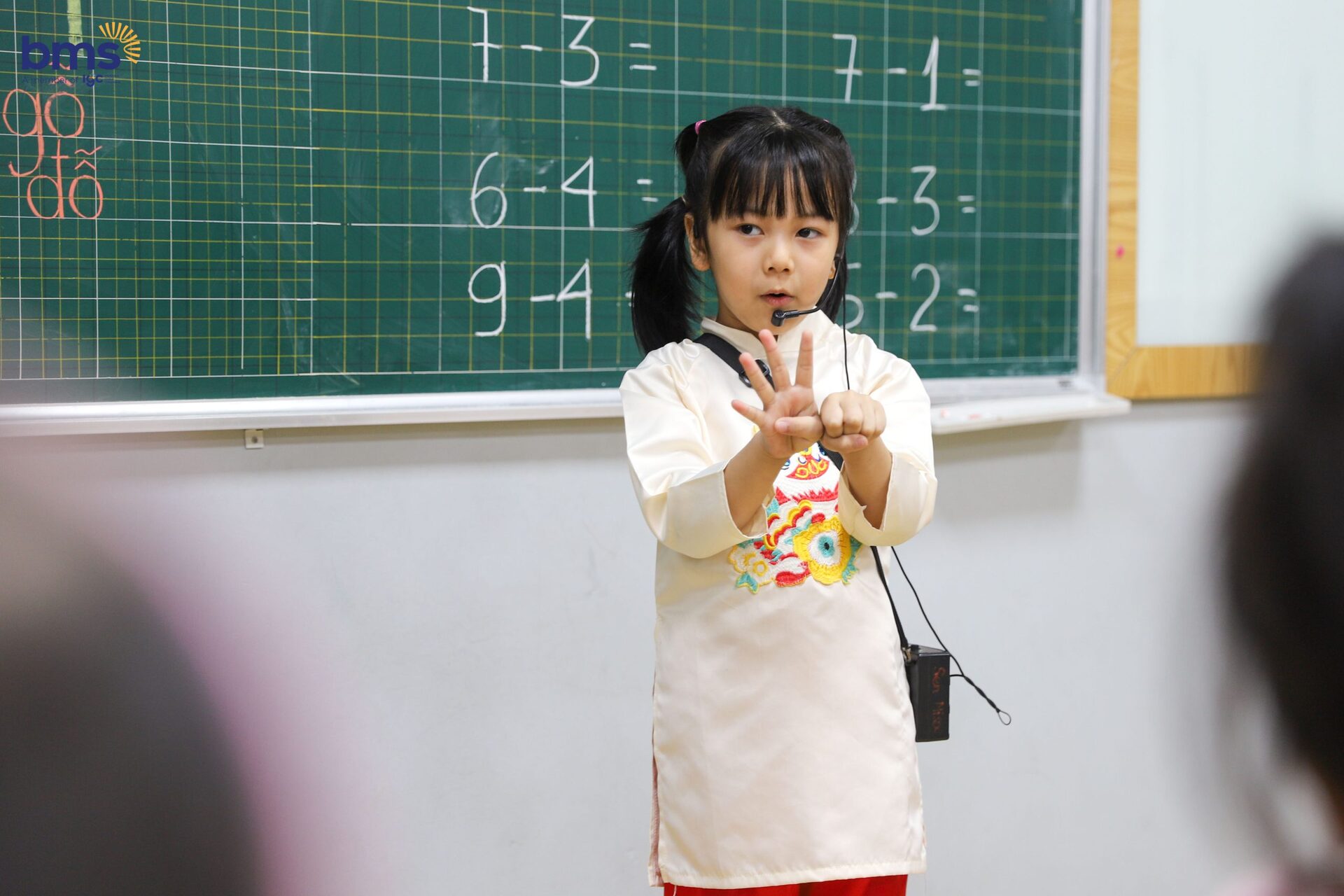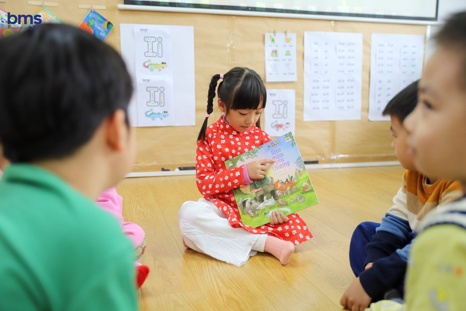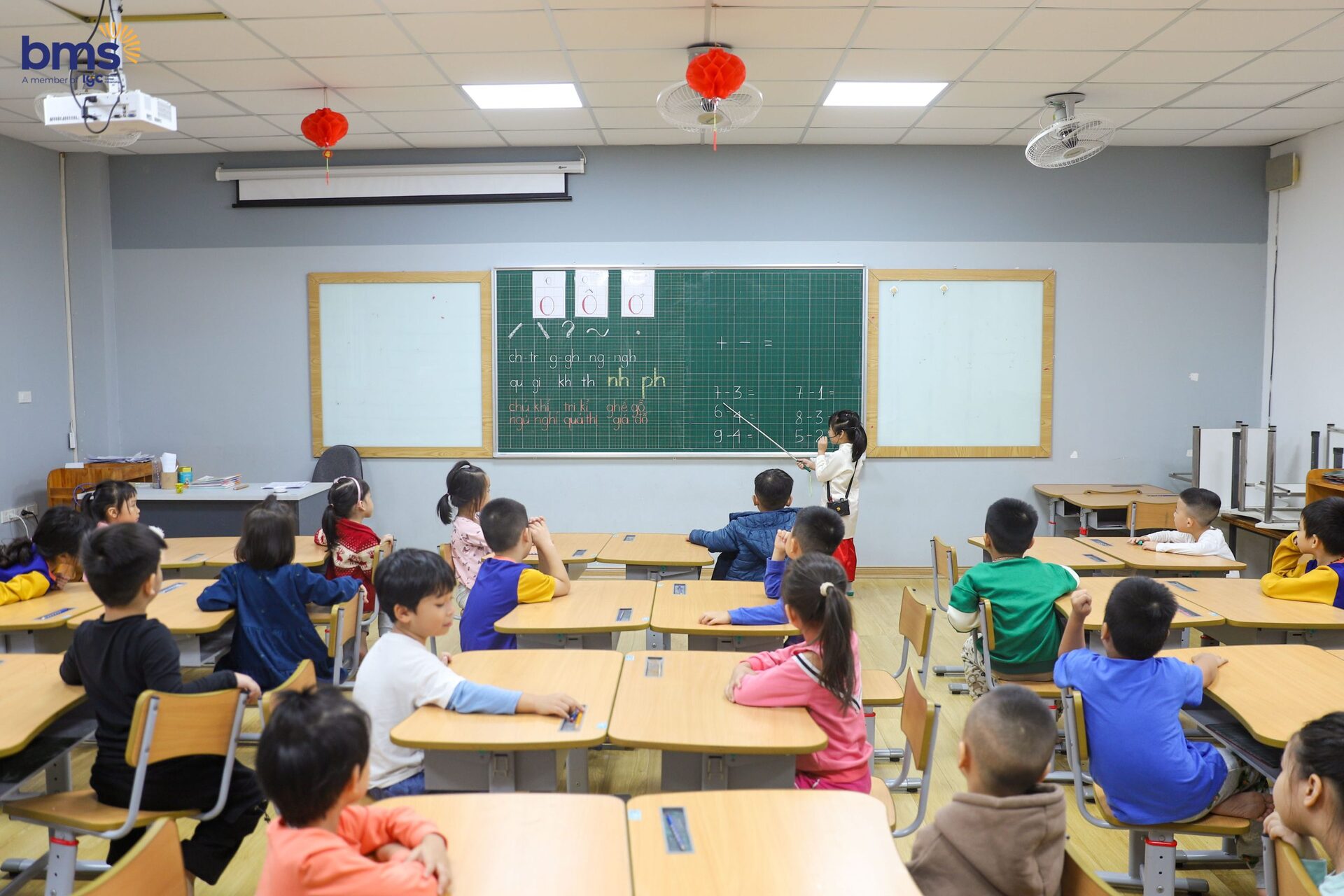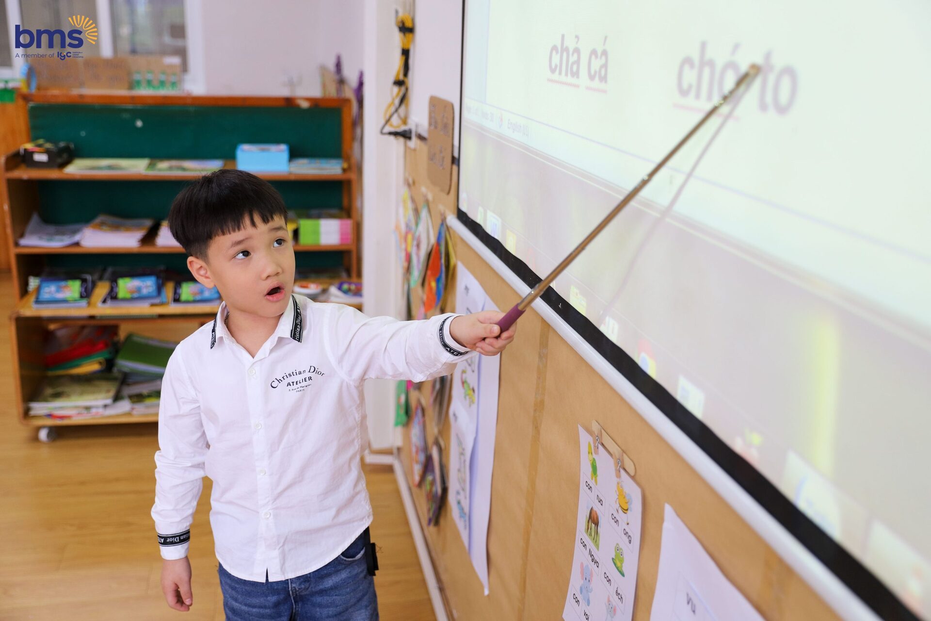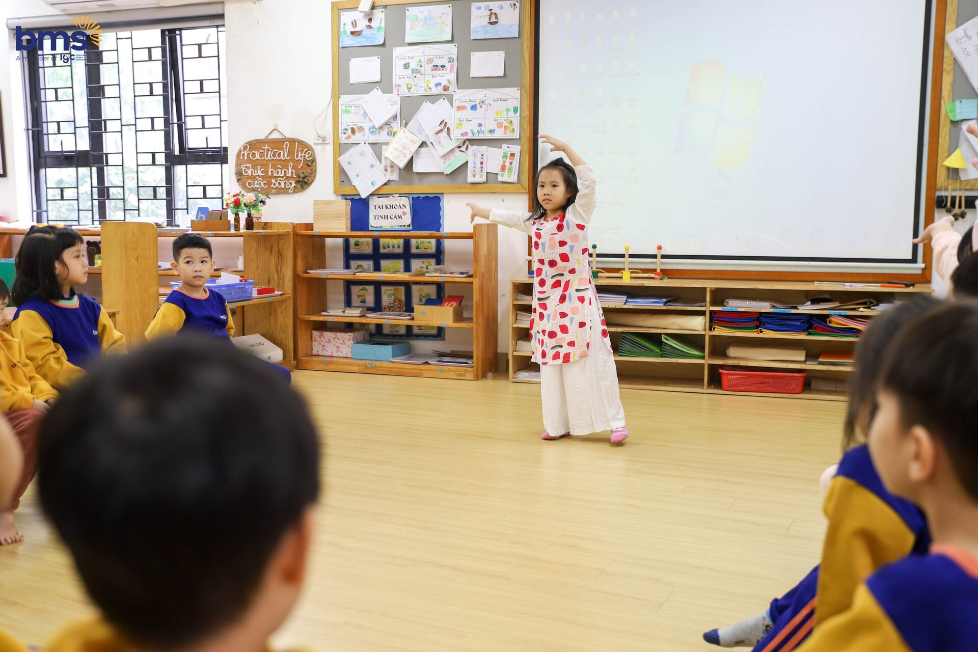 Đứng trên bục giảng, lời nói và biểu cảm của BMSers khác hẳn thường ngày. Từ trang phục đến phong thái đều nghiêm túc và trau chuốt hơn. Các con hình dung được công việc hàng ngày của cô giáo qua những tiết dạy chữ, toán học, montessori,… cùng với đó là sự nhẫn nại, luôn cố gắng và yêu thương các bạn như học trò của mình. Đây cũng là 1 trong những nội dung chính trong mục tiêu giáo dục tại BMS.