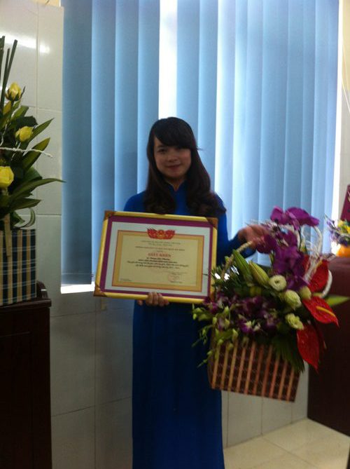 Cô giáo Dương Liên Phương – Giáo viên khối 5 tuổi, nhận Bằng khen do Ban lãnh đạo Phòng GD&ĐT Quận Hà Đông trao tặng.