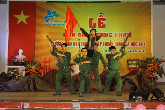 Và giờ phút quan trọng đã đến – Lễ rước bằng công nhận trường chuẩn Quốc gia diễn ra thật trang trọng trước sự chứng kiến của các vị Đại biểu,các đơn vị trường bạn và các bậc phụ huynh…Lễ rước Bằng đã thể hiện một hình ảnh rất ” Ban Mai” trong lòng đại biểu