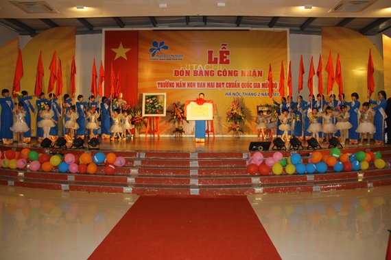 Sáng nay (2/02/2013) trường mầm non Ban Mai đã tổ chức buổi Lễ đón Bằng công nhận trường mầm non Ban Mai đạt chuẩn Quốc gia mức độ I. Trong làn nắng mới ấm áp, những nụ đào hồng chúm chím cười, những bông mai vàng đua nhau khoe sắc- Ban Mai được trang hoàng với những băng rôn và rực rỡ cờ hoa. Các cô giáo và các bé hôm nay cũng xinh tươi hơn làm cho không khí mùa xuân của Ban Mai thêm xinh đẹp. Sau bao nhiêu khó khăn vất vả với cả sự cố gắng không ngừng thì ngày mong đợi đã đến. Vẫn biết thế mà sao cứ thấy hồi hộp và xúc động lạ.