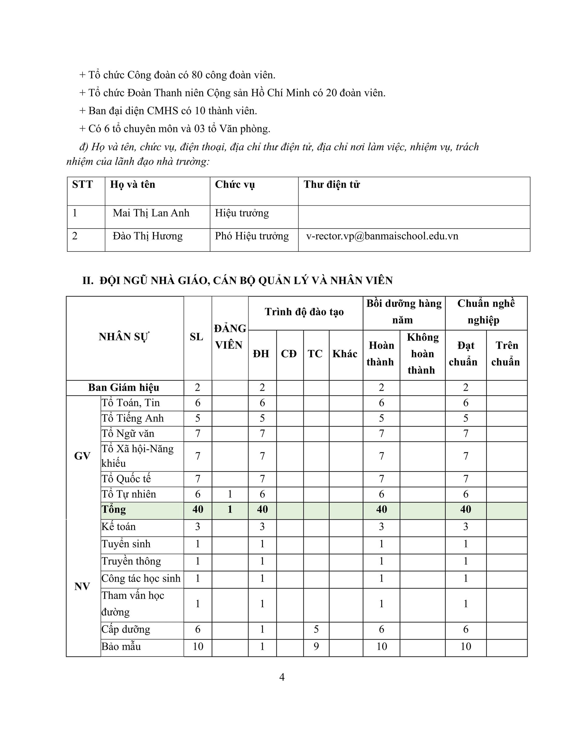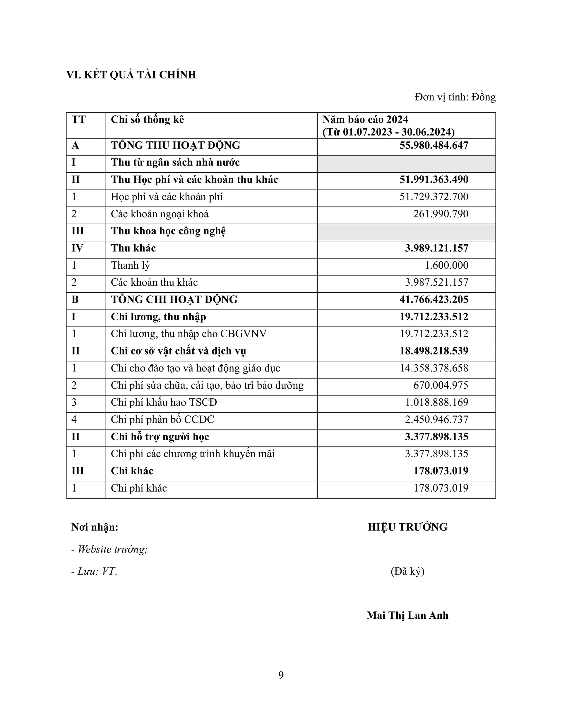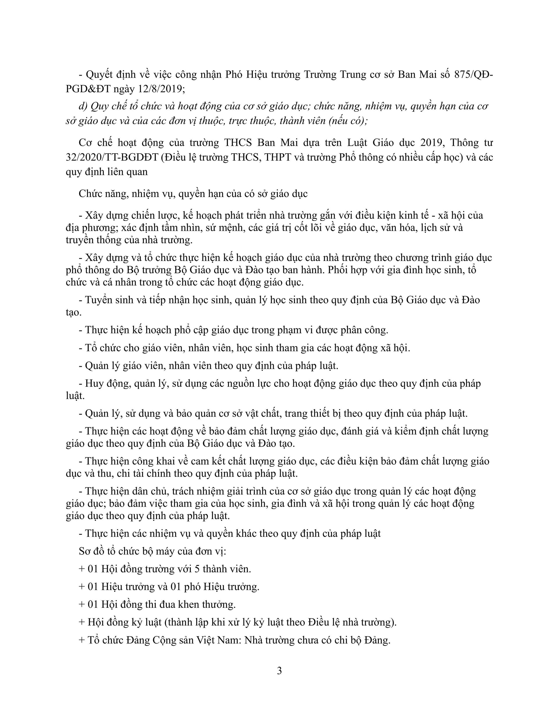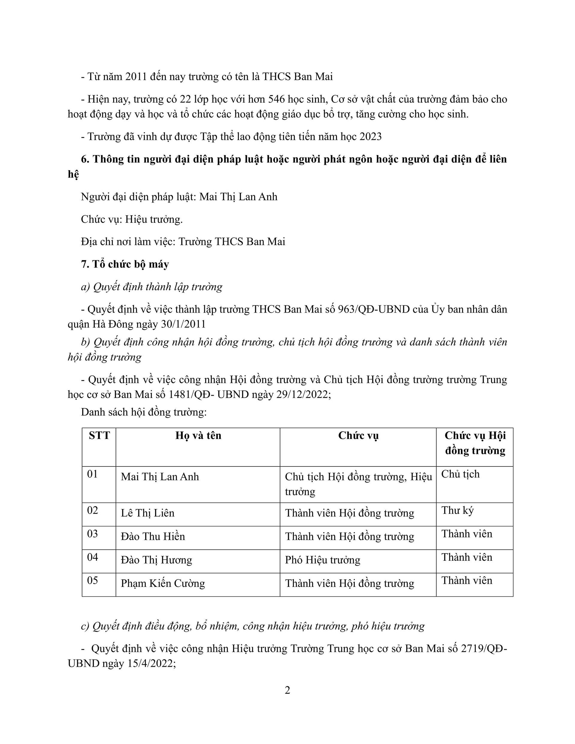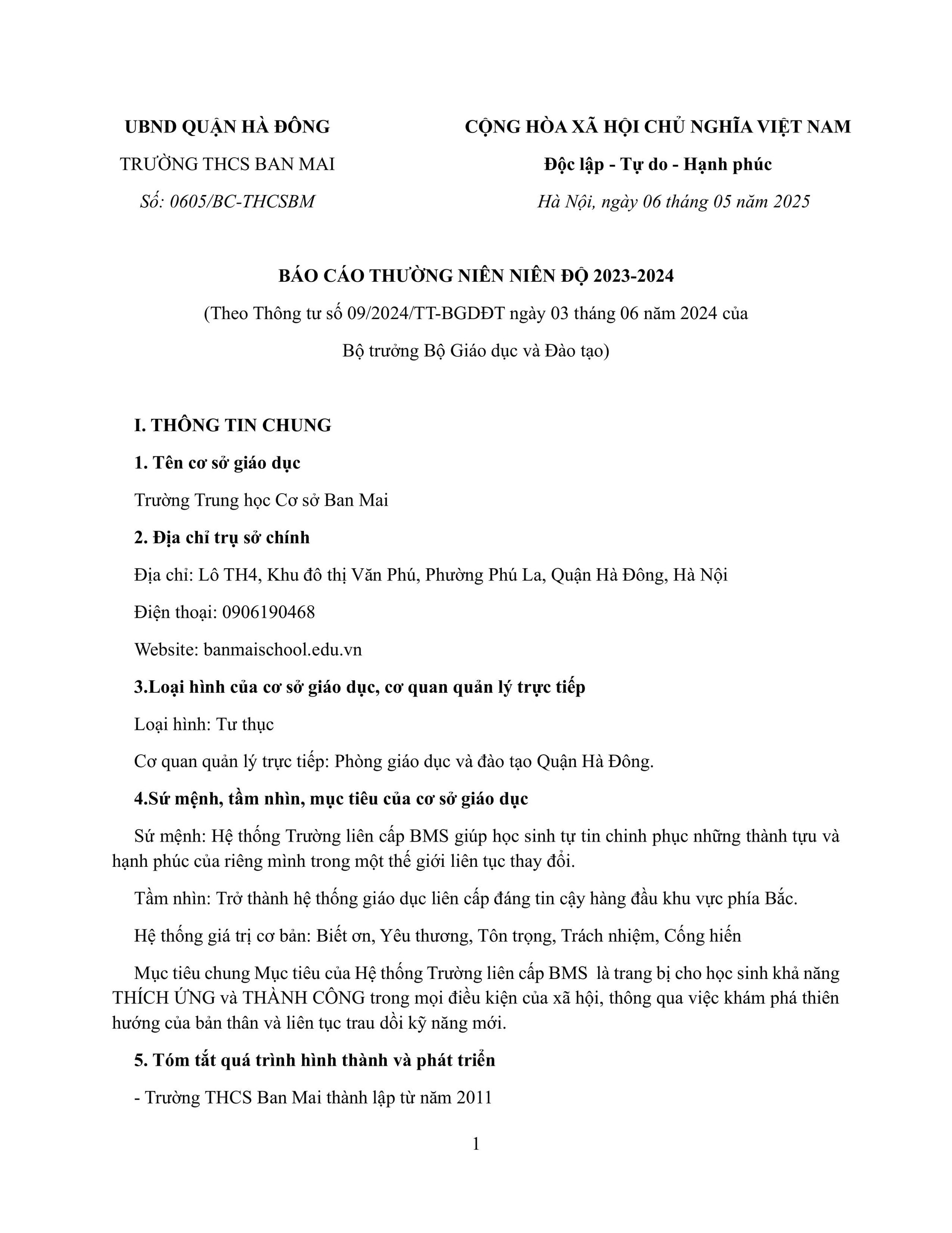 Trường THCS Ban Mai báo cáo thường niên niên độ 2023 - 2024 theo thông tư 09/2024/TT-BGDĐT ngày 03 tháng 06 năm 2024 của Bộ trưởng Bộ Giáo dục và đào tạo