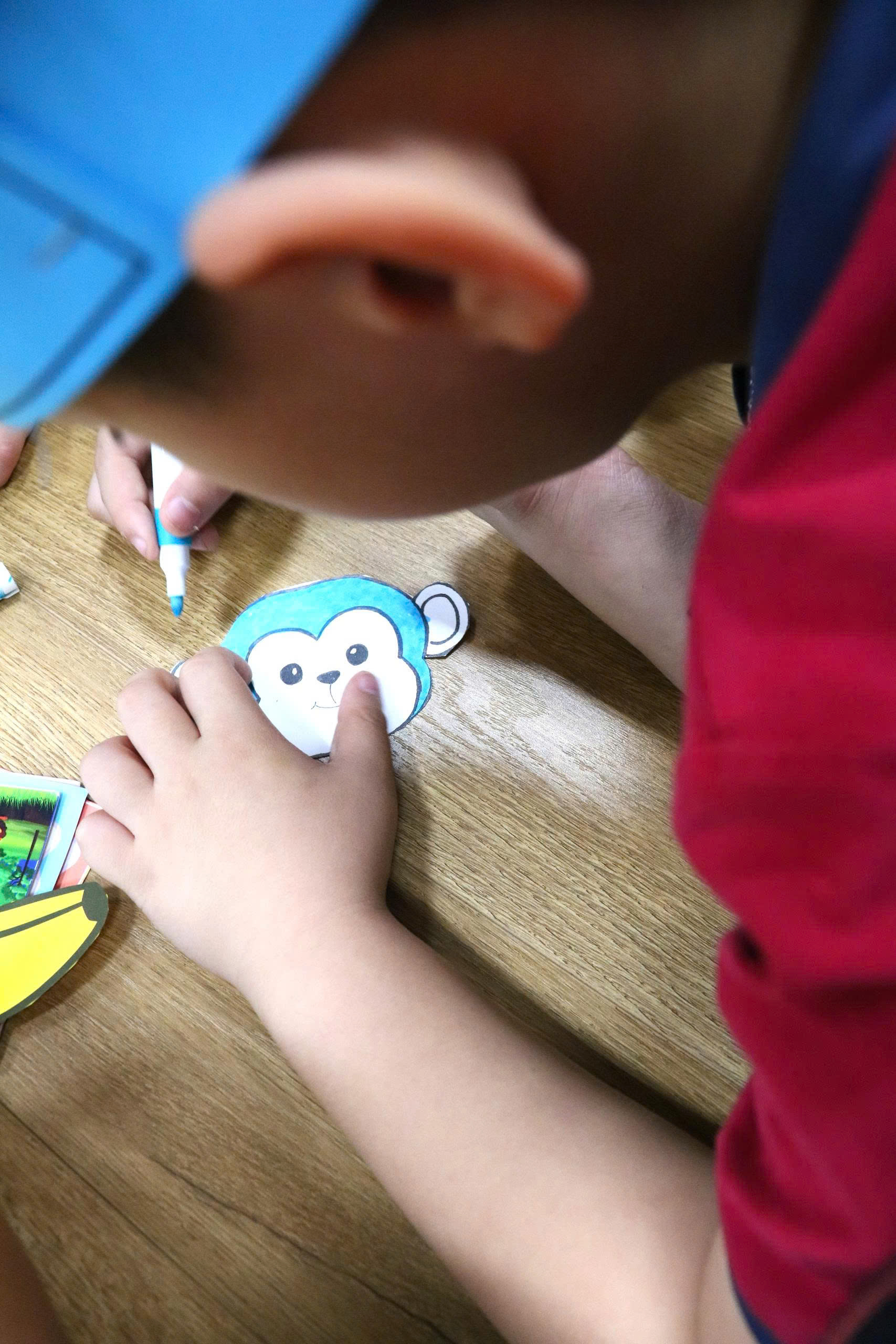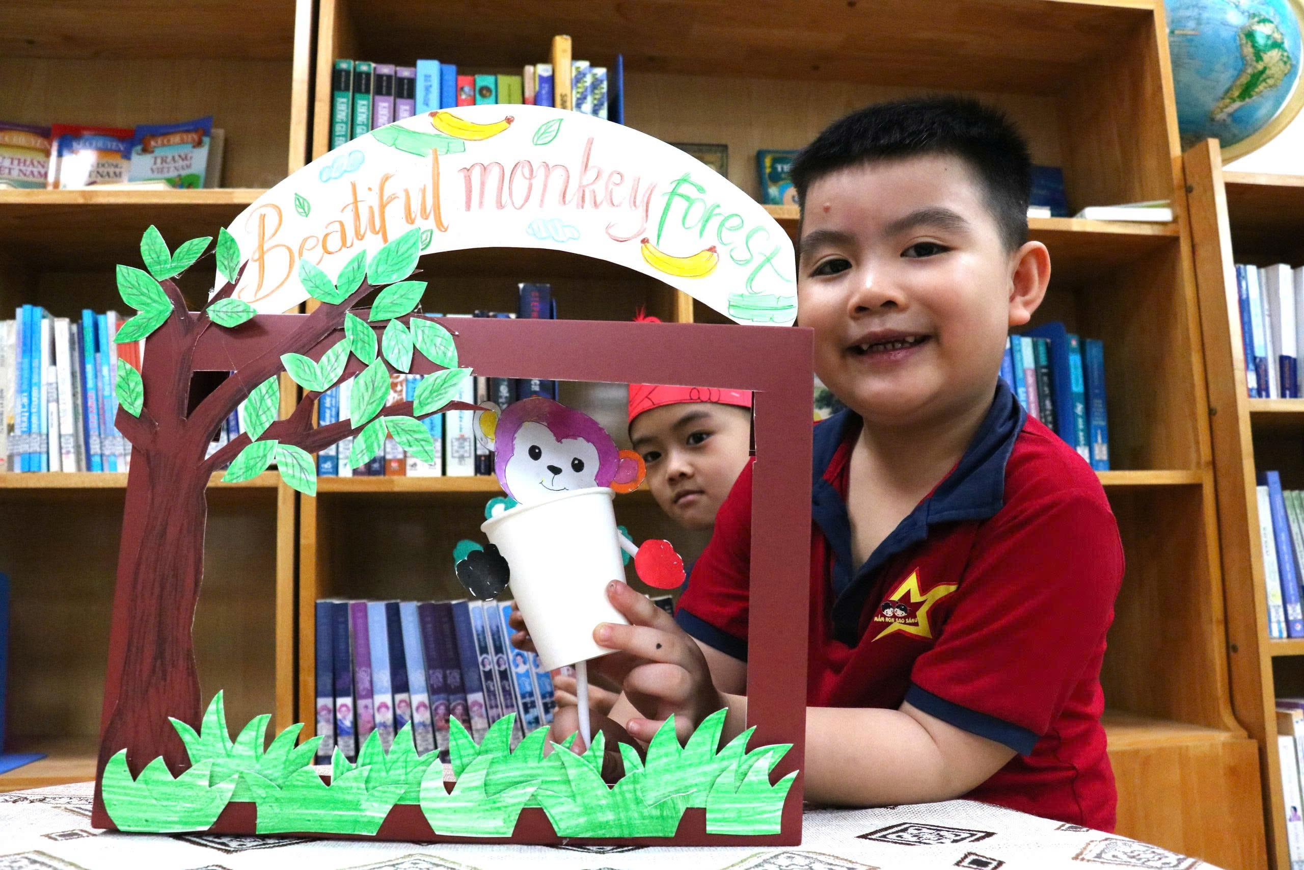 Đặc biệt, các con còn được tự tay tô vẽ và tạo hình cho những chú Khỉ của mình. Những bàn tay nhỏ xinh cẩn thận tô từng nét vẽ để có thể tạo ra cho chú Khỉ những bộ lông màu sắc hấp dẫn theo phong cách riêng của mình.