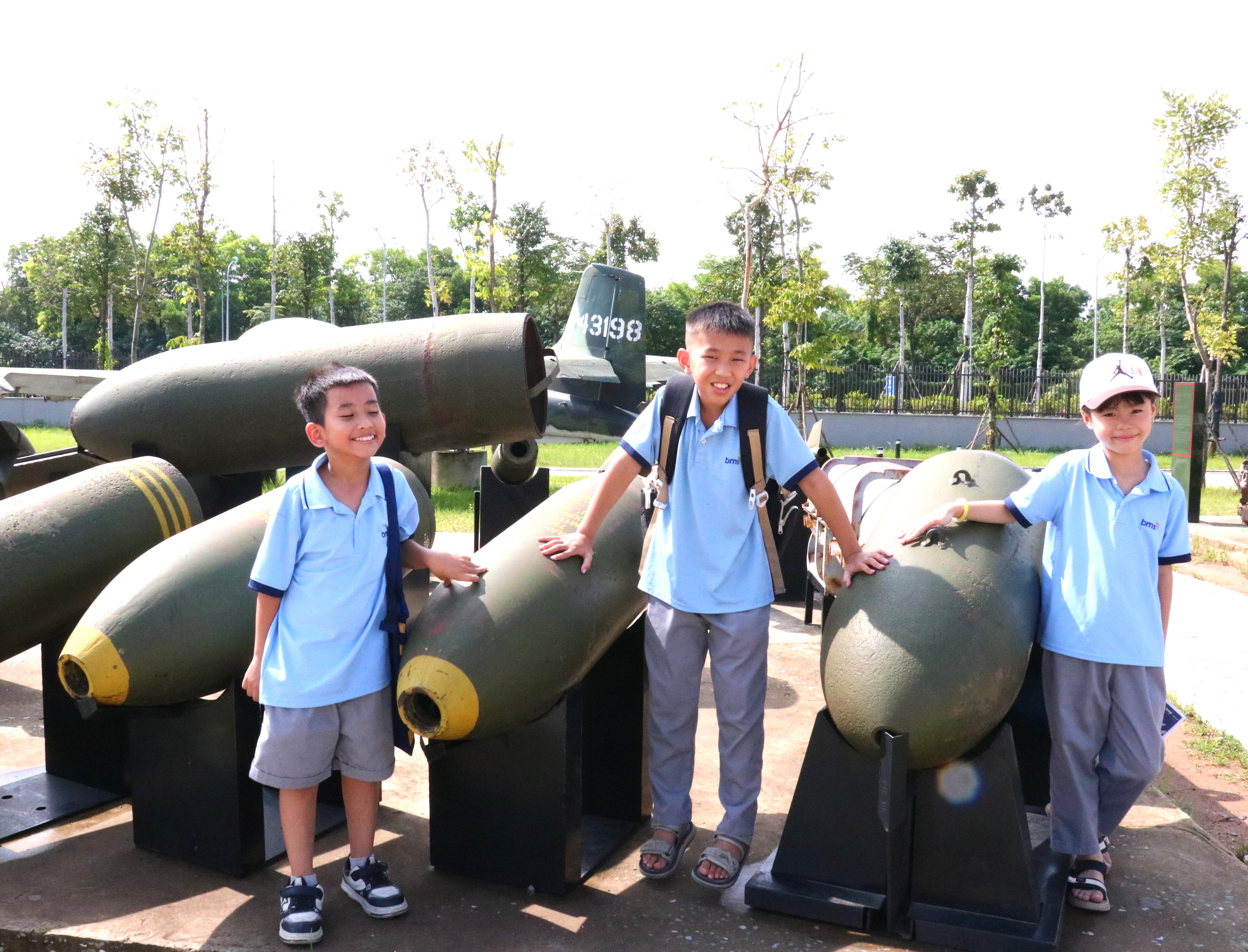 Dưới sự hướng dẫn của thầy cô và các cán bộ bảo tàng, học sinh BMS Hưng Yên được nghe kể về những trận chiến khốc liệt, những người lính kiên trung đã ngã xuống để giữ vững độc lập cho đất nước. Mỗi bức ảnh, mỗi bộ quân phục, mỗi dấu tích trên vỏ máy bay hay mảnh pháo đều là chứng nhân cho tinh thần quả cảm và ý chí bất khuất của dân tộc Việt Nam.