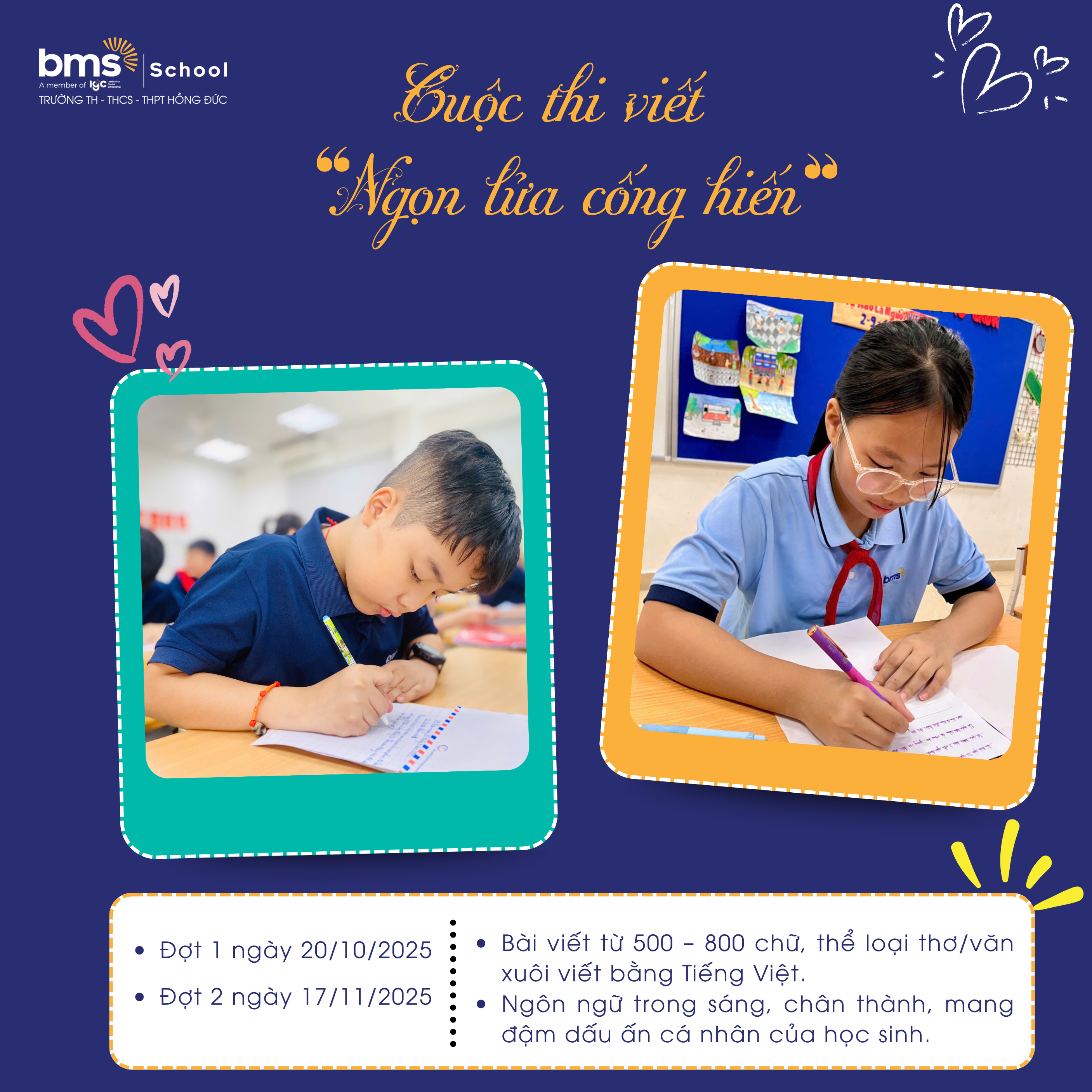 Một trong những điểm nhấn đặc biệt của chuỗi hoạt động là cuộc thi viết “Ngọn lửa cống hiến”. Mỗi bài viết dài khoảng 500–800 chữ, cuộc thi trở thành không gian để các em học sinh lắng đọng cảm xúc, ghi lại suy nghĩ và tri ân đối với những người phụ nữ quanh mình.