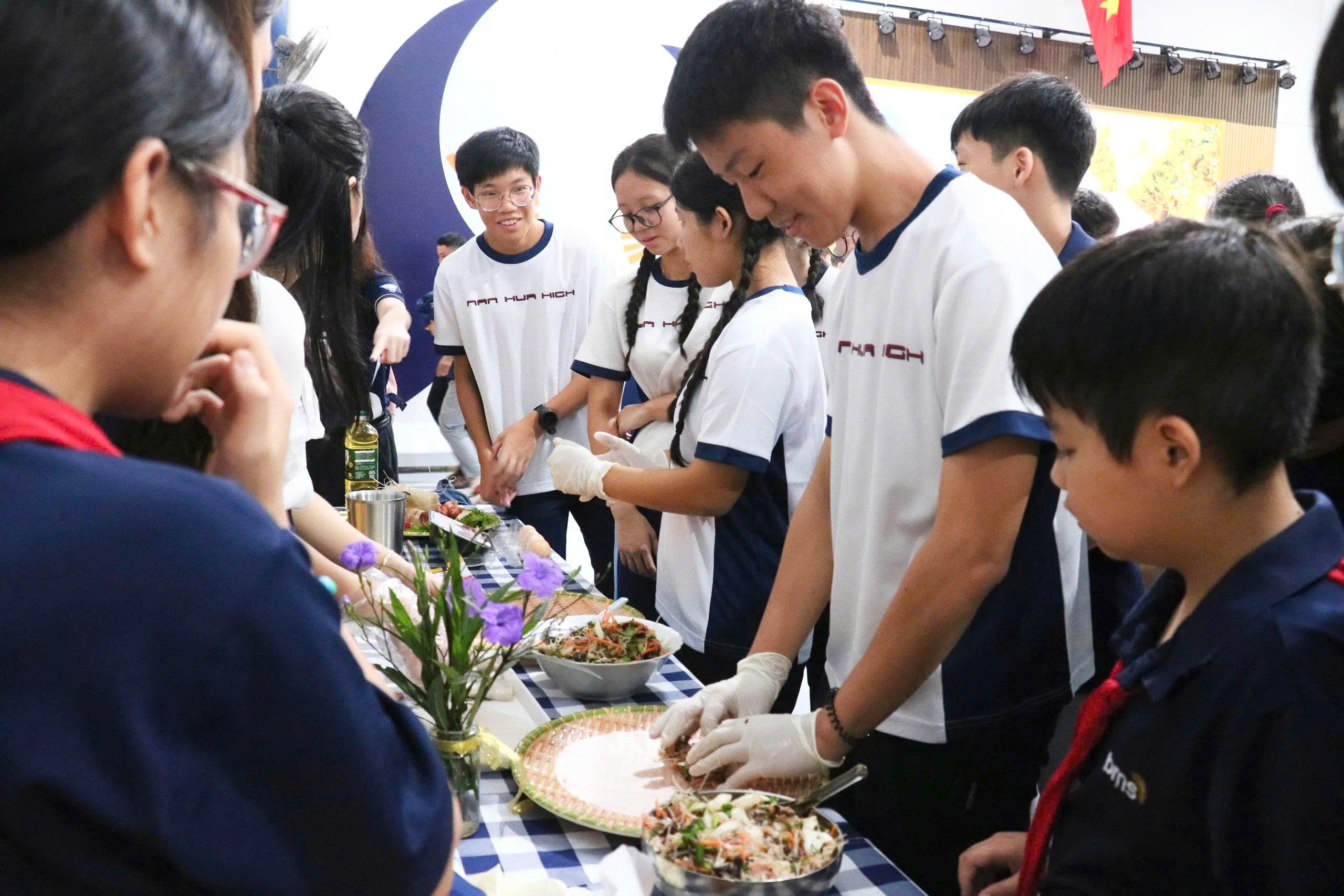 Trong hoạt động Cooking Class – How to make Spring Rolls, học sinh hai trường đã cùng nhau tìm hiểu, chế biến và thưởng thức món nem cuốn – một món ăn đặc trưng của ẩm thực Việt Nam. Không chỉ là một lớp học nấu ăn đơn thuần, đây còn là dịp để các em học sinh Singapore khám phá văn hóa Việt qua từng nguyên liệu, hương vị, và câu chuyện ẩn chứa trong món ăn truyền thống.