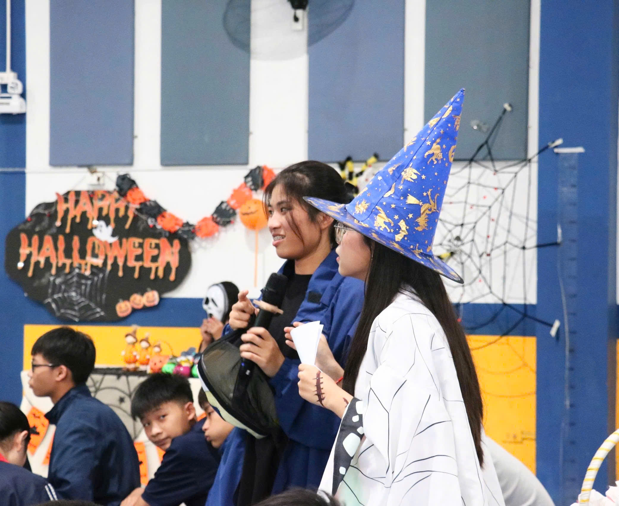 Những kiến thức thú vị được lồng ghép qua các câu hỏi nhanh, trò chơi trí tuệ khiến buổi học trở nên hấp dẫn và dễ nhớ hơn bao giờ hết. Qua đó, các em hiểu rằng Halloween không chỉ mang màu sắc huyền bí, còn ẩn chứa ý nghĩa sẻ chia, niềm vui và lòng nhân ái.