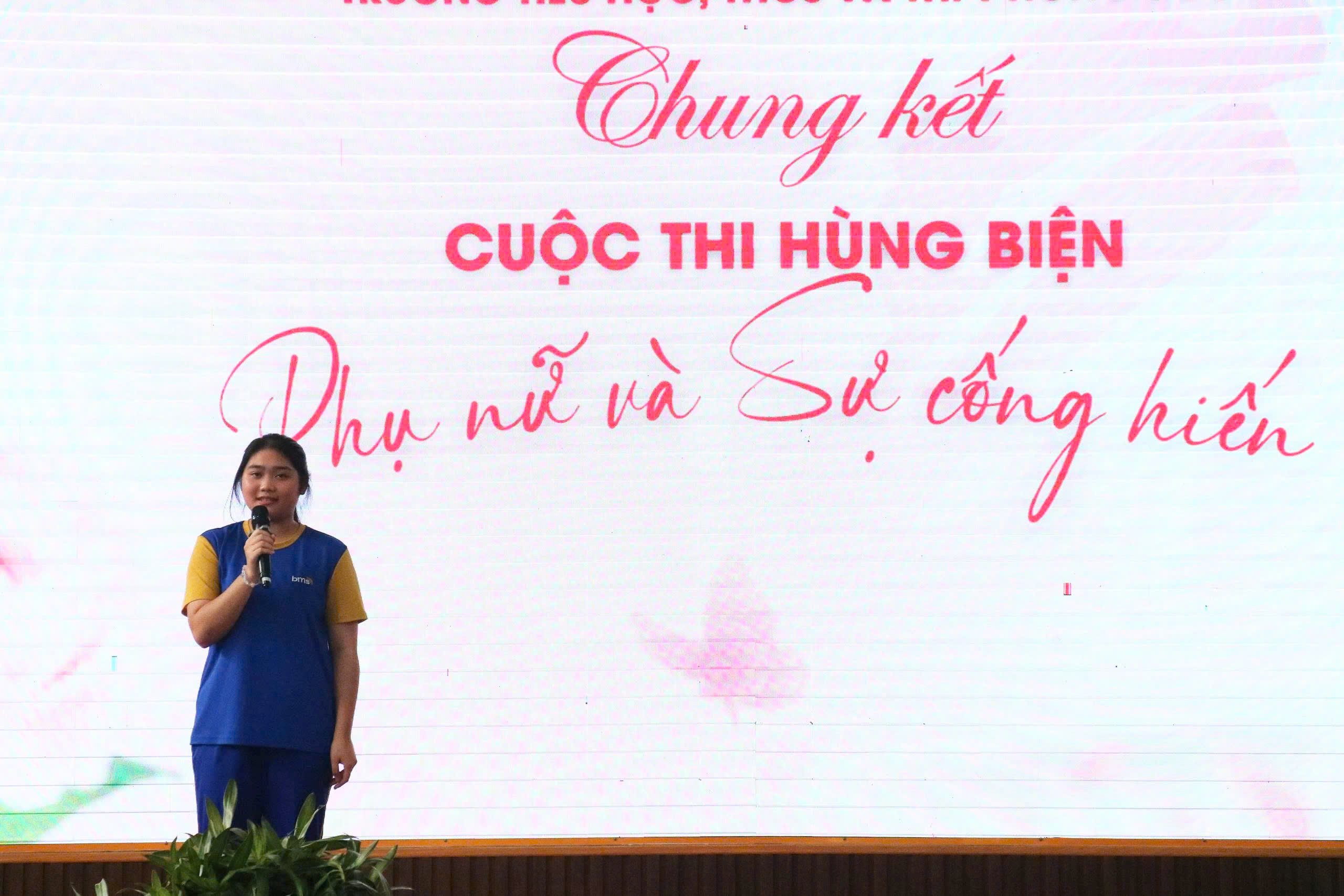 Một trong những hoạt động được mong chờ nhất là cuộc thi Hùng biện “Phụ nữ và Sự cống hiến”. Tại đây, các “BMSers” đã thể hiện bản lĩnh, sự tự tin và tư duy sâu sắc qua từng bài diễn thuyết. Từ hình ảnh người mẹ tần tảo, người cô tận tụy đến những người phụ nữ Việt Nam vươn lên khẳng định mình trong xã hội hiện đại, mỗi bài hùng biện đều là một góc nhìn trân trọng và cảm động.
