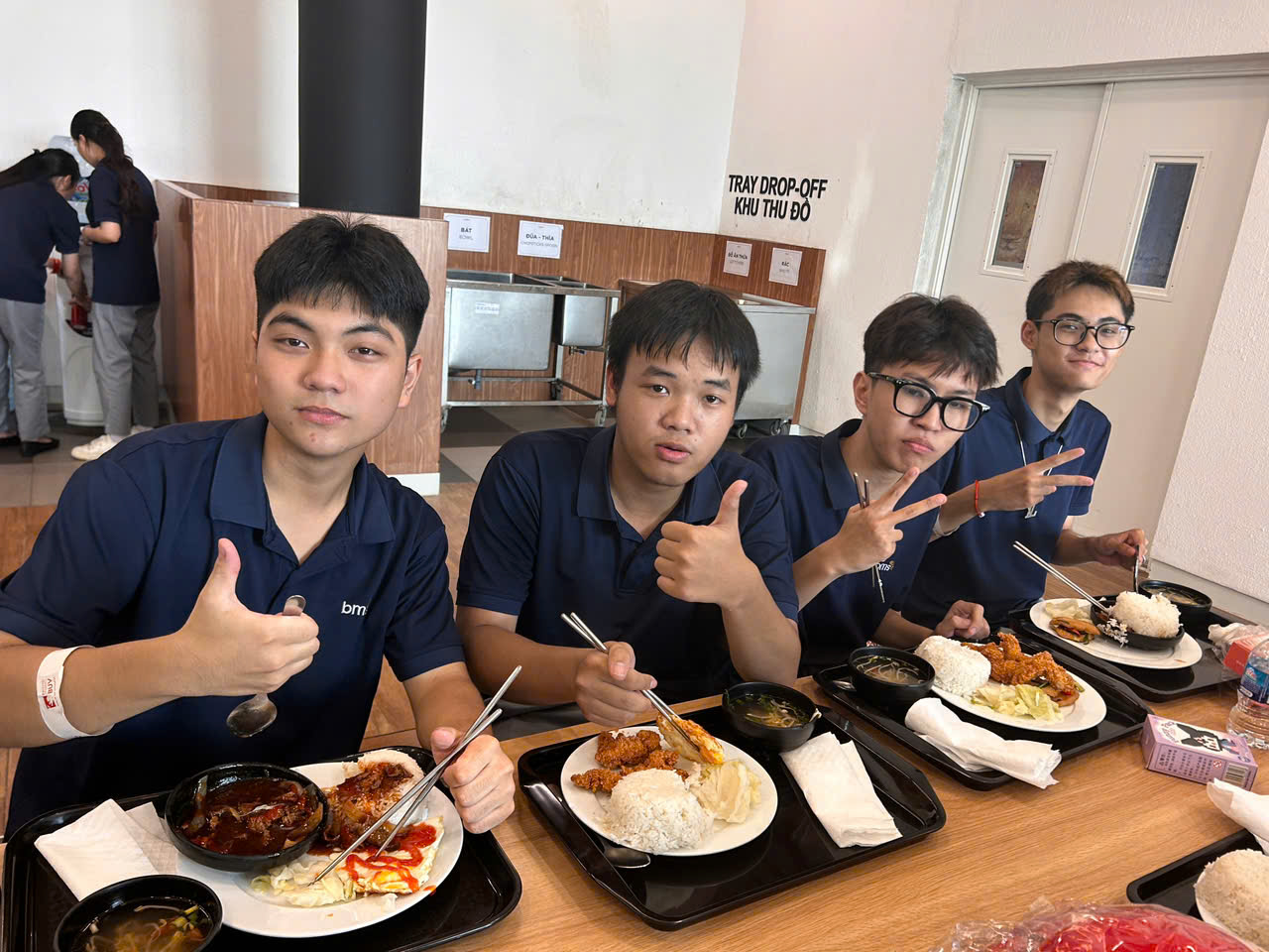 Bữa trưa tại canteen của trường đã mang đến một trải nghiệm ấm áp và ý nghĩa. Trong không gian hiện đại, tiện nghi, học sinh vừa thưởng thức bữa ăn, vừa chia sẻ cảm xúc sau buổi học và hoạt động. Những câu chuyện rôm rả, những tiếng cười vang đã giúp cả đoàn thêm gắn bó, đồng thời để lại dấu ấn đẹp trong ký ức tuổi học trò.