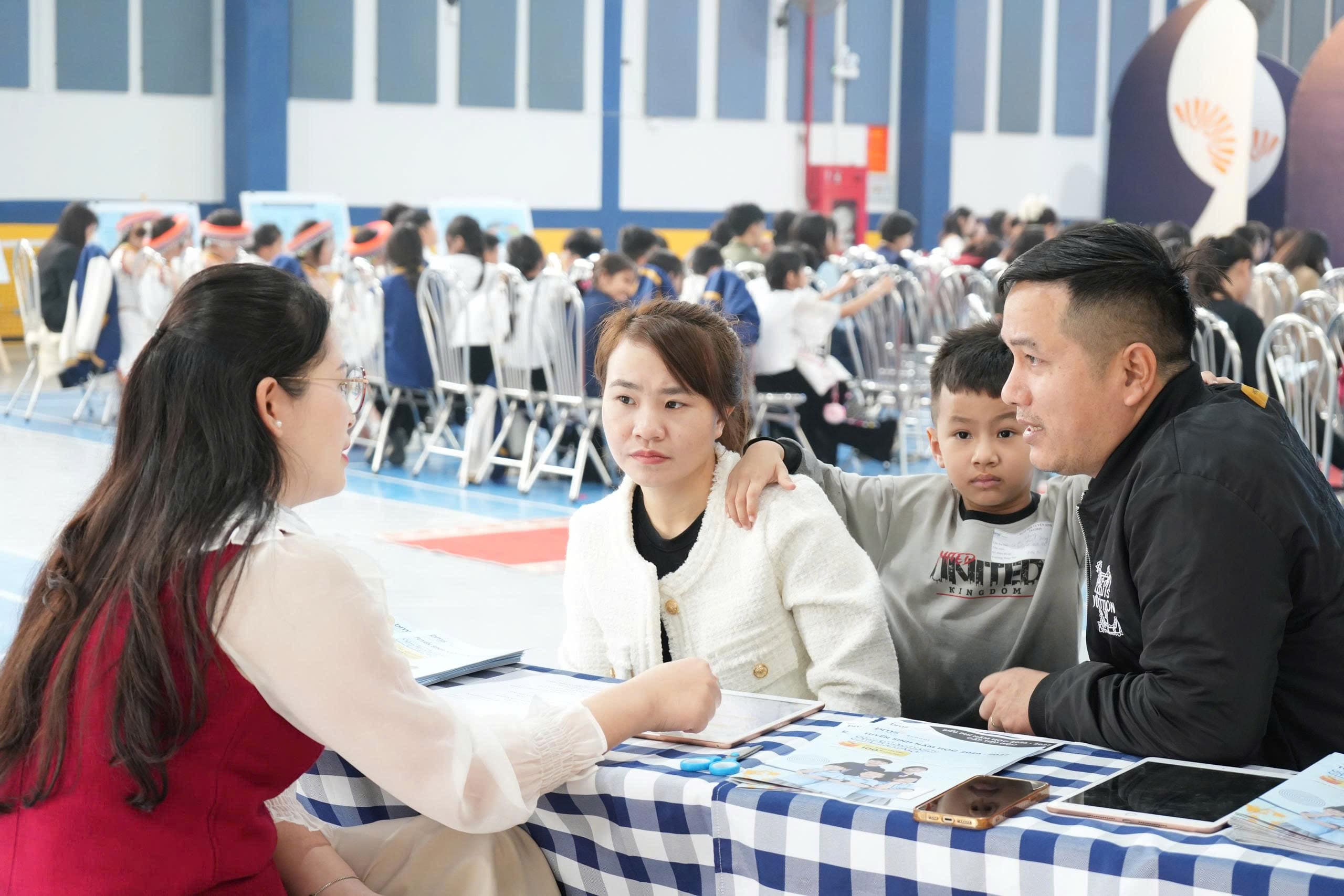 Song song với các hoạt động trải nghiệm, khu vực tư vấn lộ trình học tập cũng là nơi đón tiếp lượng lớn phụ huynh. Tại đây, đội ngũ tư vấn đã hỗ trợ giải thích từng nội dung về chương trình học, điểm nổi bật trong phương pháp giáo dục, cơ chế hỗ trợ học sinh, cơ sở vật chất và chính sách tuyển sinh của trường.