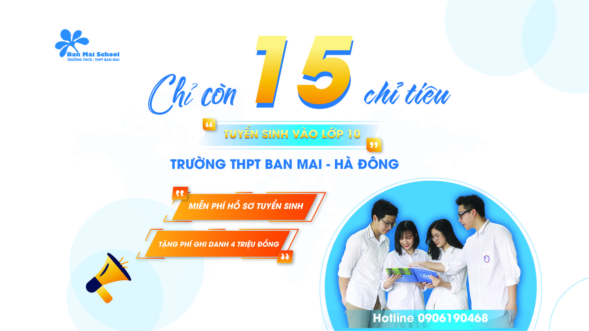 Do nhu cầu xét tuyển và thi tuyển vào Lớp 10 Trường THPT Ban Mai Hà Đông năm học 2022 – 2023 tăng cao, vì vậy chỉ còn 15 suất vào lớp 10 cuối cùng dành cho học sinh đủ điều kiện.