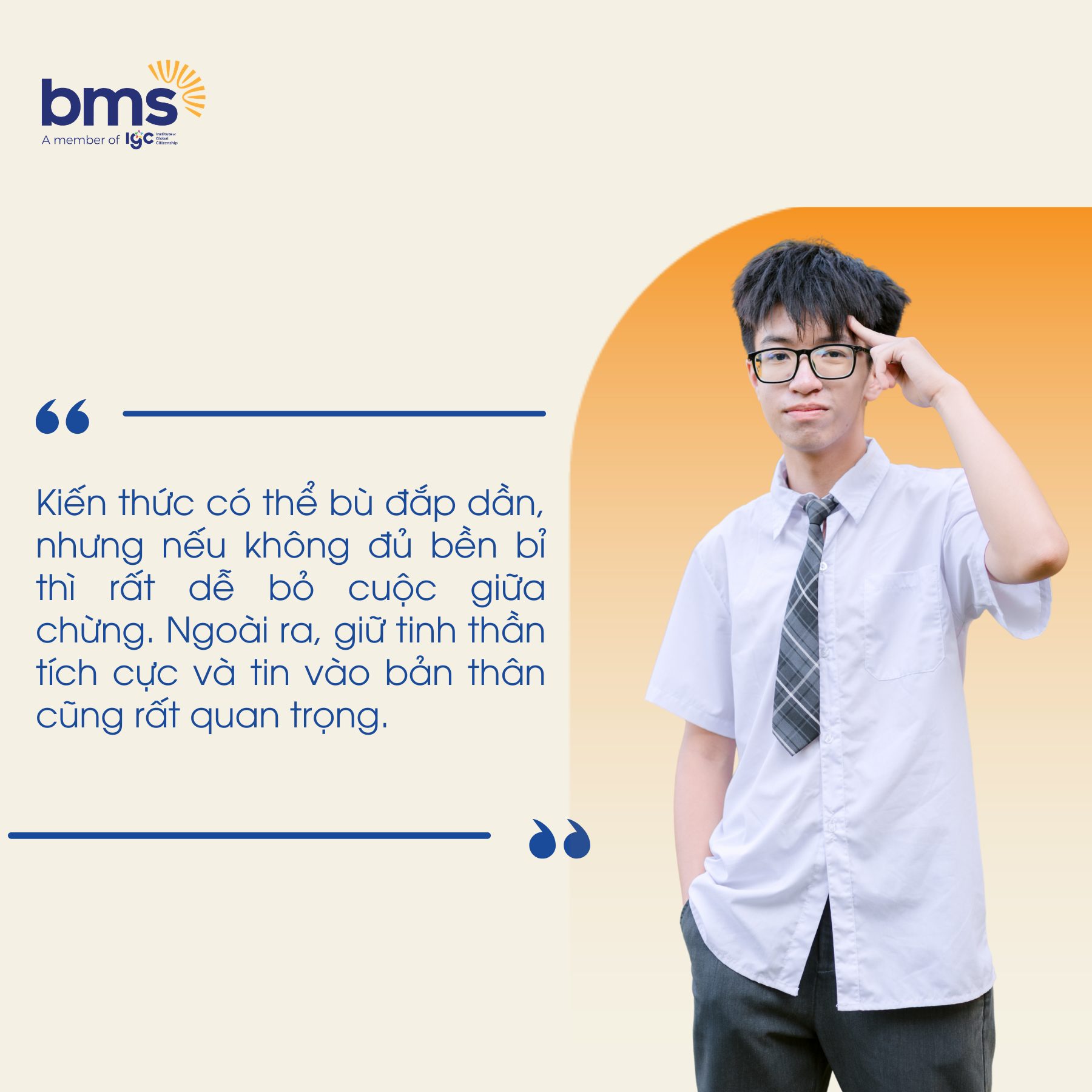 “Trước đây em dễ lo lắng khi bước vào kỳ thi lớn. Sau nhiều lần trải nghiệm, em học cách giữ bình tĩnh và tập trung vào những gì mình có thể kiểm soát.”