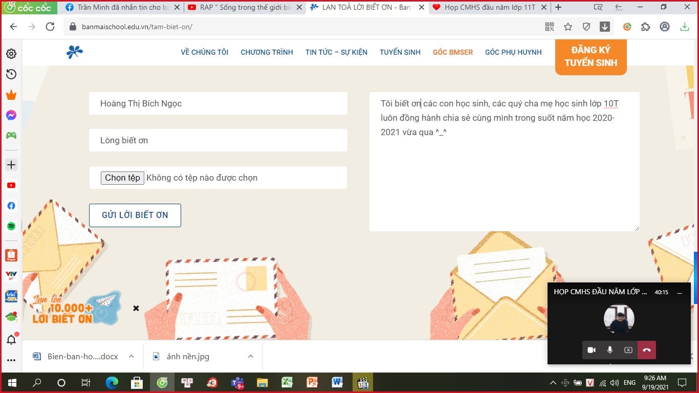 Nhà trường trân trọng cảm ơn quý Cha mẹ đã dành thời gian tham gia họp trực tuyến, tích cực trao đổi và chia sẻ nhằm mang đến cho học sinh điều kiện tốt nhất để học tập và rèn luyện trong năm học mới, đặc biệt là trong giai đoạn nhiều thách thức do dịch Covid-19 như hiện nay.