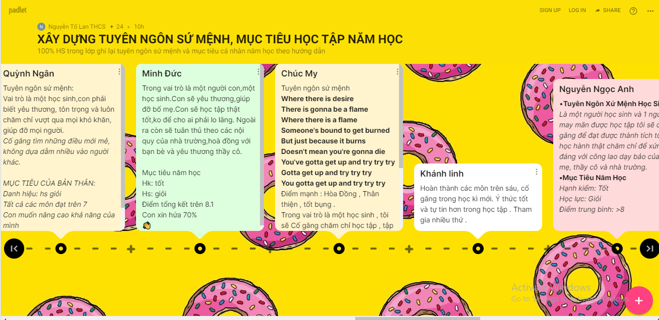 - Hiện thực hoá quy trình Lim( Leader in Me): Tập thể lớp/ học sinh xây dựng Tuyên ngôn sứ mệnh; Mục tiêu học tập…