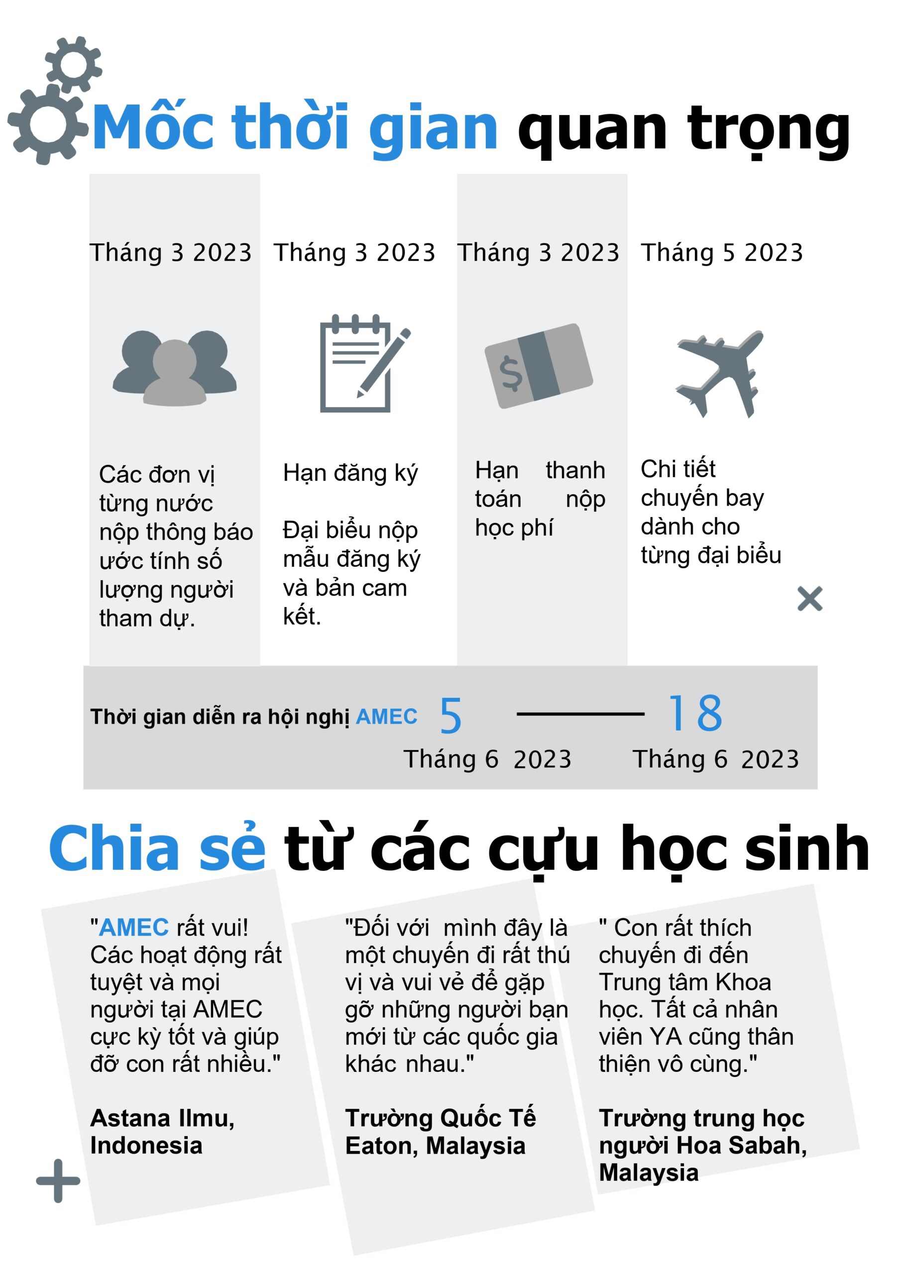 AMEC là hội nghị liên quan đến lập trình, tất cả các đại biểu học sinh cần tự chuẩn bị máy tính xách tay (laptop) đang hoạt động tốt.