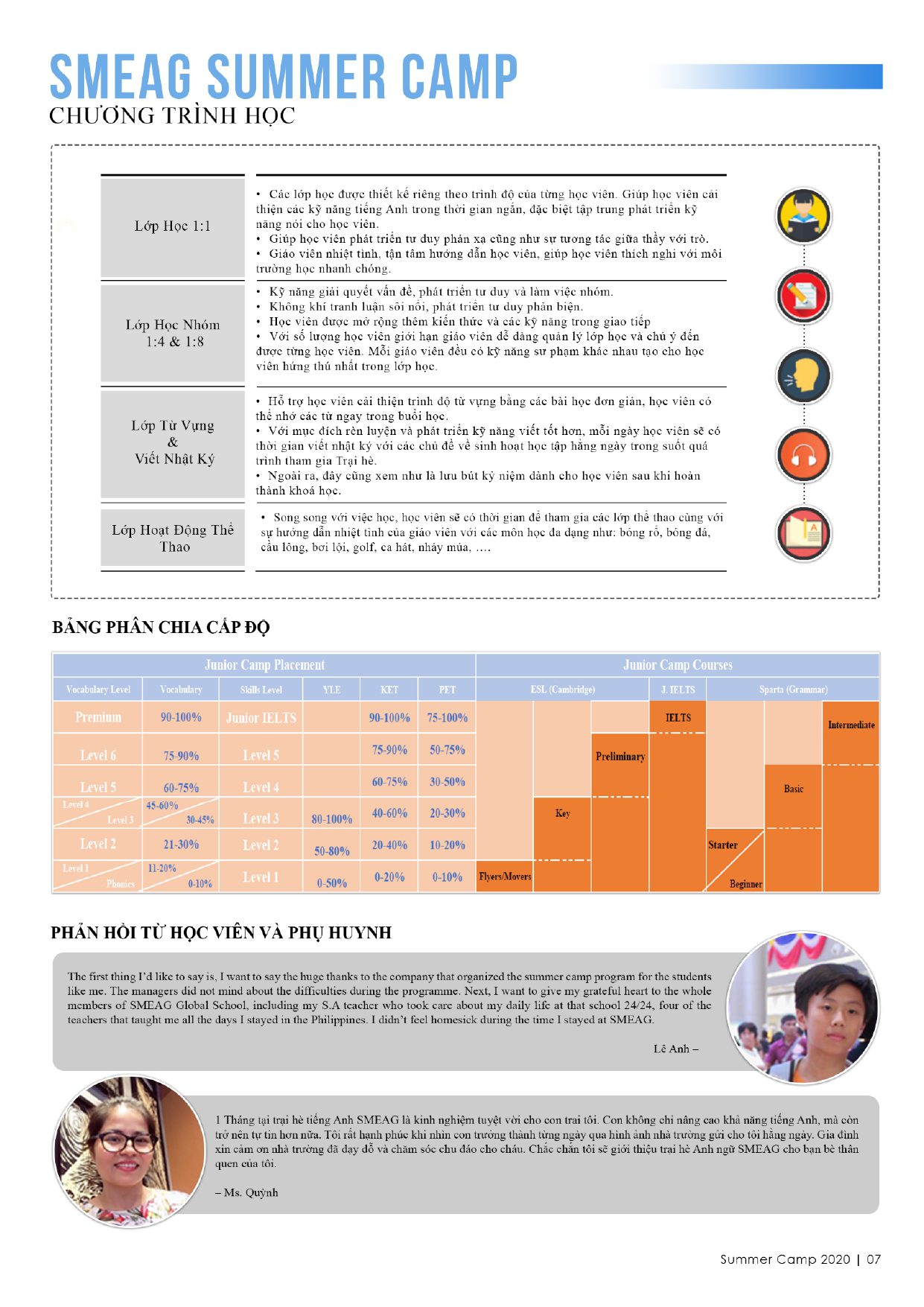 • PHÙ HỢP VỚI ĐA DẠNG HỌC SINH: Xuất phát từ thực tế học sinh tham gia trại hè có trình độ tiếng Anh, độ tuổi và sở thích khác nhau, nên giáo