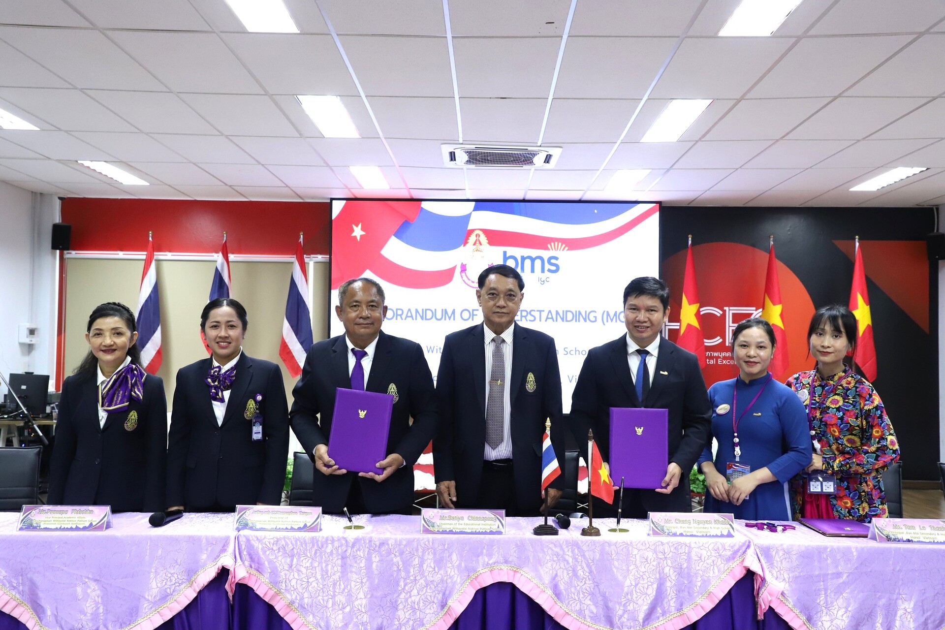 Trong khuôn khổ chương trình BMS GLOBAL CONNECT 2025, Trường THCS - THPT Ban Mai (Hệ thống Trường liên cấp BMS) đã tái ký kết Biên bản ghi nhớ hợp tác (MOU) với Trường Kanchanapisek Wittayalai Nakhon Pathom (KPN), Thái Lan. Sự kiện đánh dấu bước tiến vững chắc trong định hướng toàn cầu hóa giáo dục của BMS, mở ra cơ hội trao đổi, kết nối và phát triển giữa hai đơn vị giáo dục uy tín khu vực.