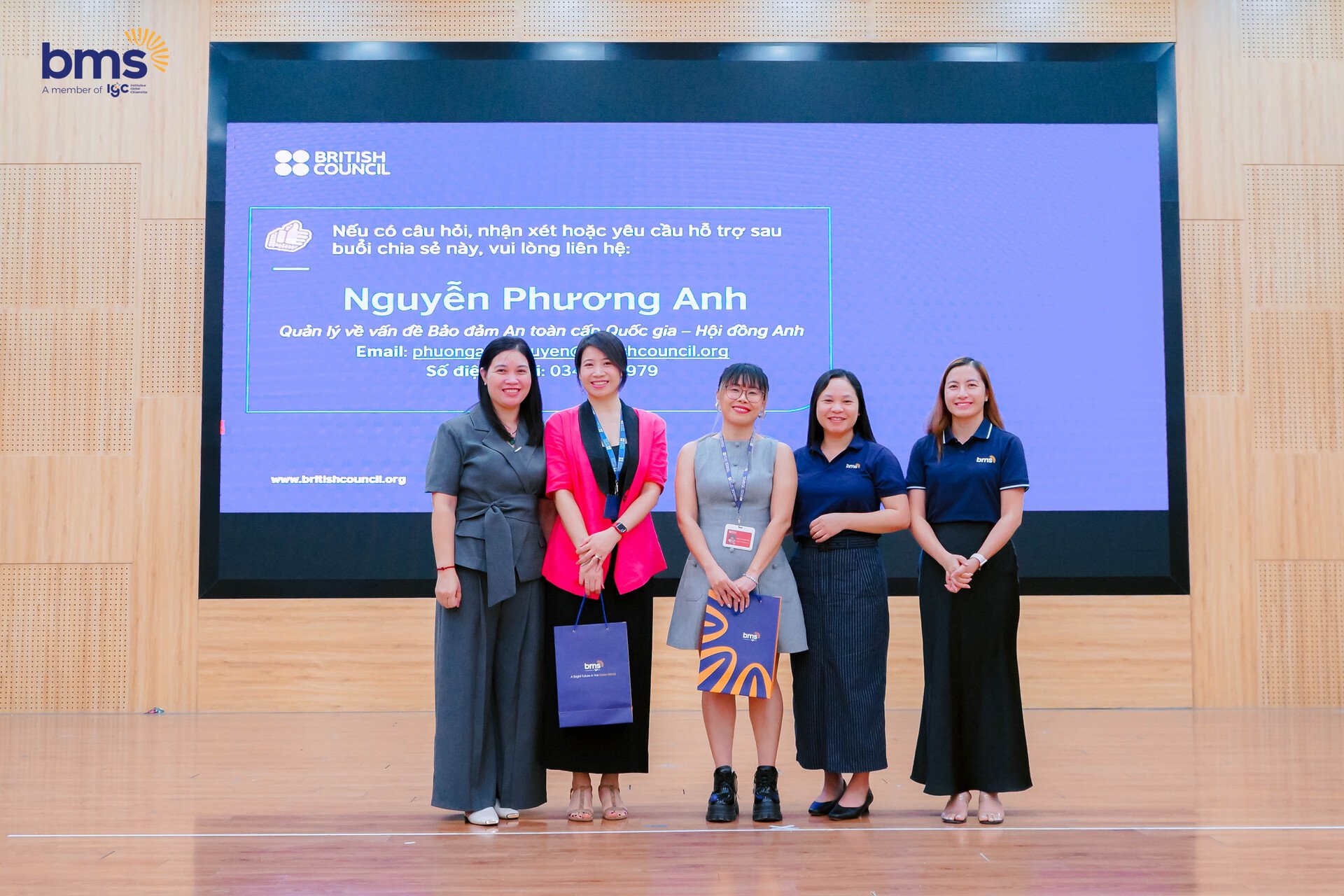 Tại BMS Hà Nội: Trường THCS – THPT Ban Mai, an toàn học đường là giá trị cốt lõi gắn liền với triết lý giáo dục nhân văn và được triển khai xuyên suốt trong chương trình EHS (Environment – Health – Safety). Hằng năm, nhà trường tổ chức tái đào tạo về “An toàn trường học và Bảo vệ trẻ em” dành cho toàn thể giáo viên, nhân viên. Năm nay, buổi tập huấn do cô Nguyễn Phương Anh – Quản lý Bảo đảm An toàn cấp Quốc gia - Hội đồng Anh trực tiếp dẫn dắt, mang đến nhiều chia sẻ gần gũi và giàu tính thực tiễn.