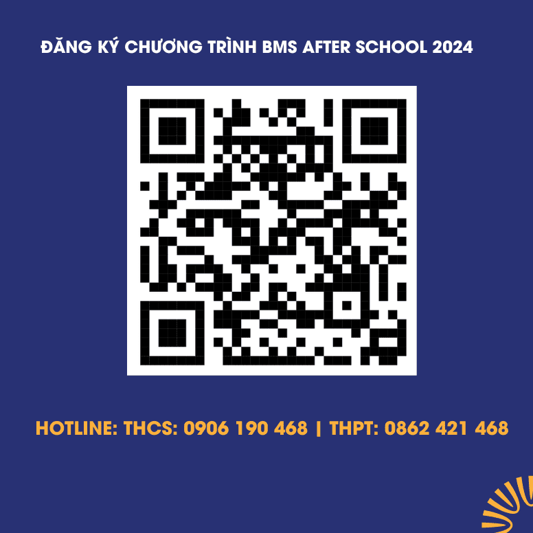 Đây là thế giới của bạn sau 16 giờ chiều! Đăng ký tại link; https://bit.ly/BMS_ĐăngkýAfterschool2024 để cùng hòa nhập vào cộng đồng học tập "siêu cool" tại BMS và biến mỗi buổi chiều thành khoảng thời gian tuyệt vời nhất của bạn!