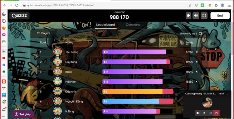- Giáo viên có thể tổ chức hoạt động khởi động đầu tiết học bằng các câu hỏi được thiết kế dạng game trên Quizzi, Khoot,… sẽ tạo nên sự hứng thú, tích cực với học sinh.