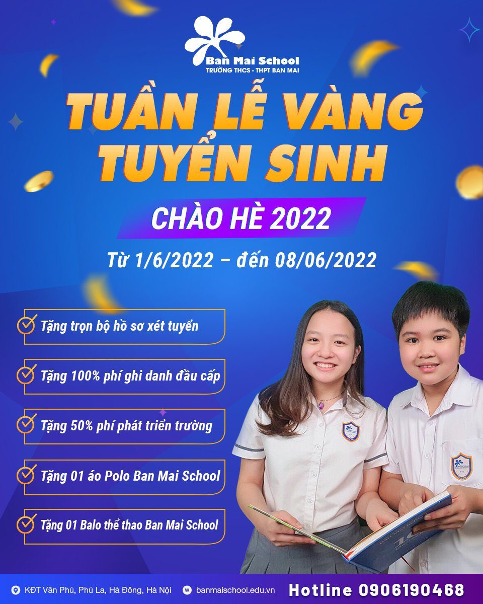 Đăng ký thông tin tuyển sinh lớp 6, lớp 10 Trường THCS – THPT Ban Mai học: https://www.tuyensinhthcsthptbanmai.edu.vn/2022-2023