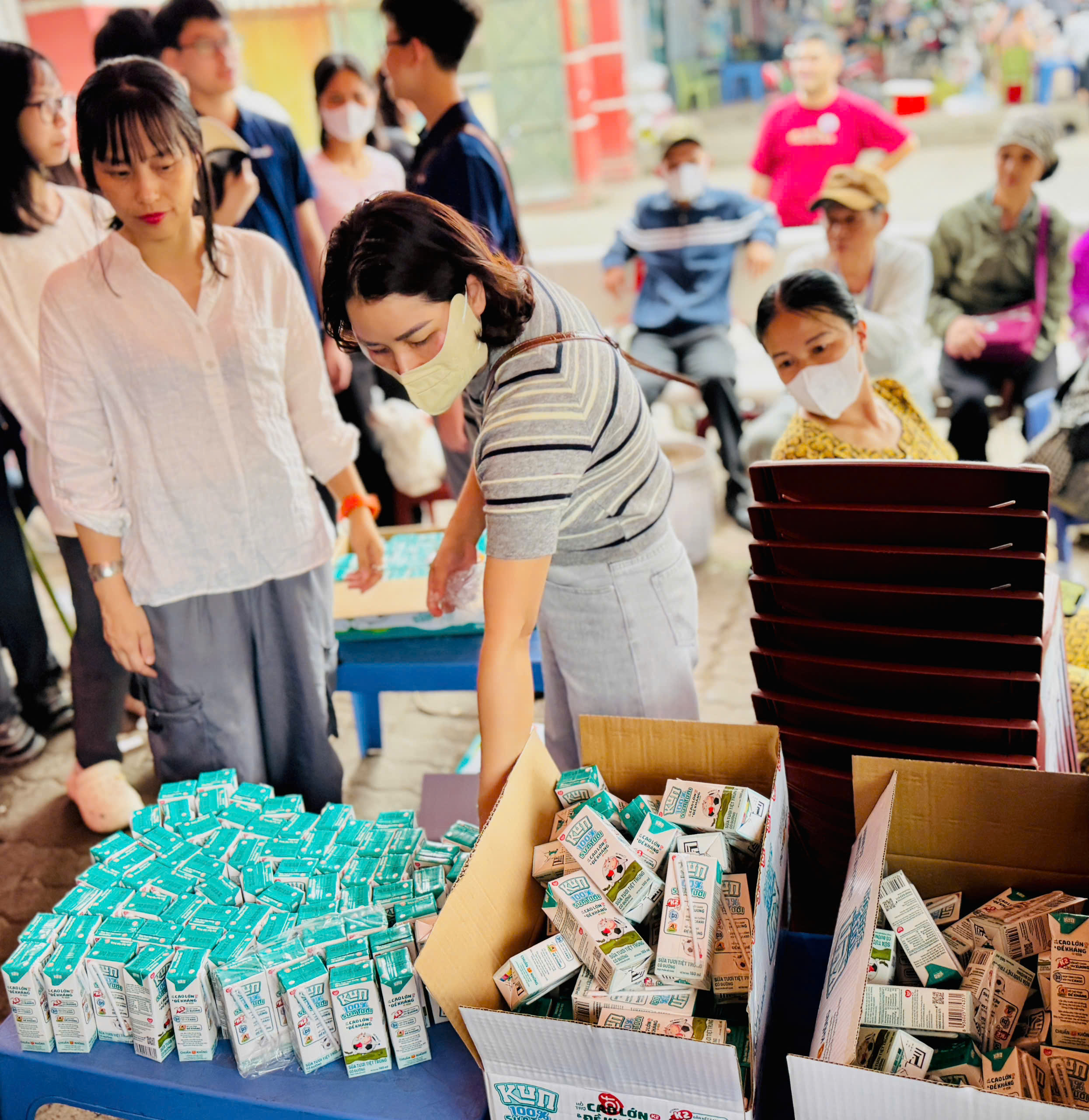 Gần 300 hộp sữa được các bạn học sinh trao tận tay bằng tất cả sự trân trọng.