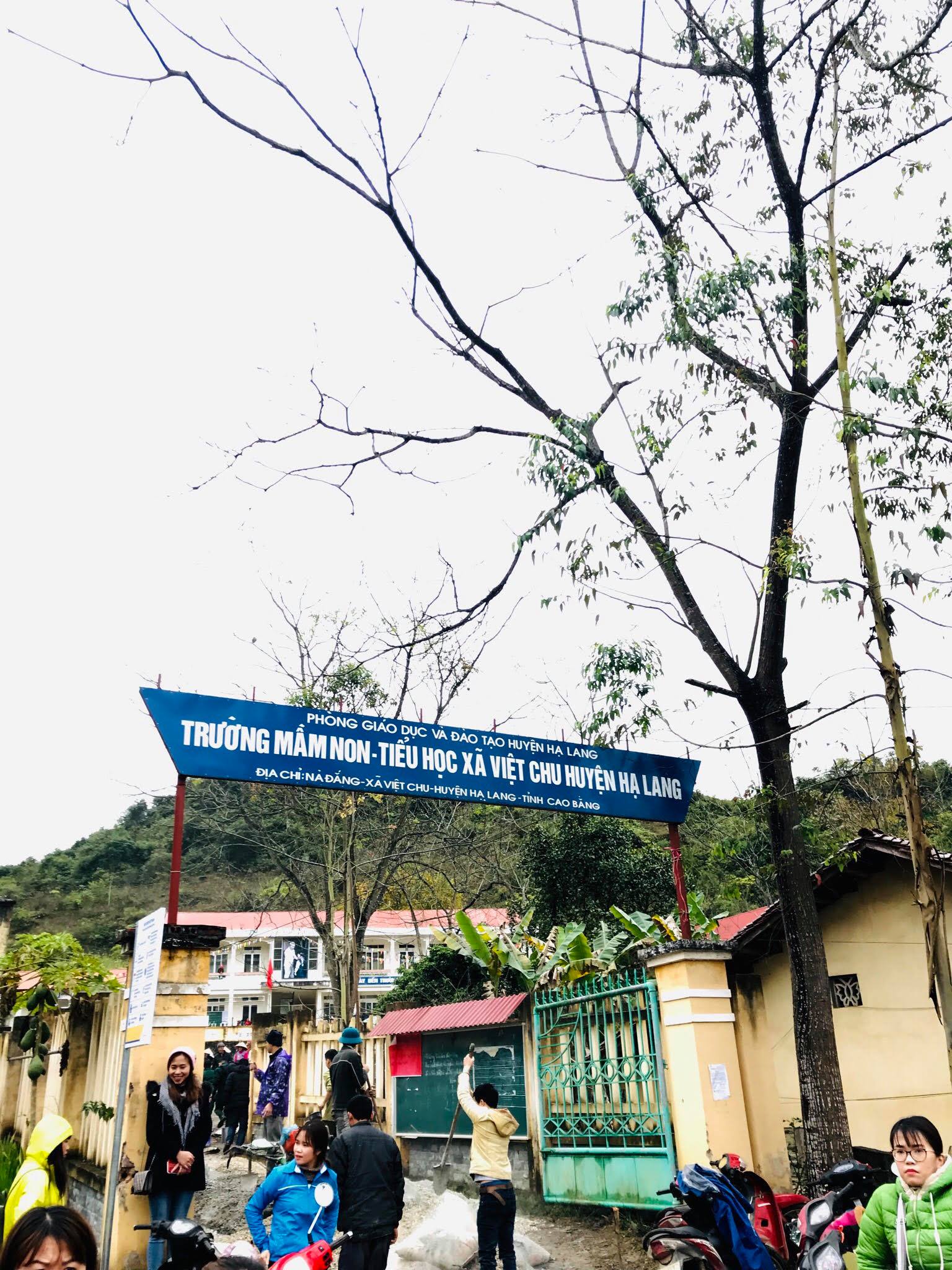 Thầy Nguyễn Ngọc Thiện (trái), Thầy Nguyễn Trạc Huy (phải) tham gia tích cực trong phong trào tình nguyện tại cơ sở Trong chuyến đi tình nguyện Đoàn TN 3 đơn vị đã tổ chức thăm hỏi tặng quà đến các hộ gia đình chính sách, gia đình có hoàn cảnh khó khăn và các em học sinh đặc biệt khó khăn tại các đơn vị nhà trường tại xã Việt Chu, xã Quang Long, huyện Hạ Lang, tỉnh Cao Bằng. Đoàn công tác đã tổ chức nhiều chương trình ý nghĩa, lan tỏa tinh thần sẻ chia đến cộng đồng như:-Tặng 80 phần quà tới các hộ gia đình chính sách, các hộ gia đình nghèo, các em học sinh có hoàn cảnh khó khăn;- Tổ chức khám phát thuốc miễn phí cho 50 ông bà bệnh đau xương khớp;- Tặng công trình sân chơi bê tông trị giá 30 triệu đồng cho đơn vị trường Tiểu Học Việt Chu;- Tặng 400 bộ dụng cụ học tập cho trường Tiểu Học Việt Chu;- Tặng 20 chăn ấm cho đơn vị trường Mầm Non Quang Long;- Tặng hỗ trợ 3 tr mua dụng cụ thể thao cho Đồn biên phòng Quang Long và quyên góp nhiều quần áo, đồ dùng thiết yếu khác ủng hộ bà con tại 2 đơn vị. Thăm hỏi động viên cán bộ, chiến sỹ đồn biên phòng Quang Long. Trong chuyến đi đoàn công tác đã tổ chức đêm giao lưu VHVN với cán bộ, chiến sĩ đồn biên phòng Quang Long thắm tình quân dân. Cùng xem lại một số hình ảnh ý nghĩa tại chương trình thiện nguyện: