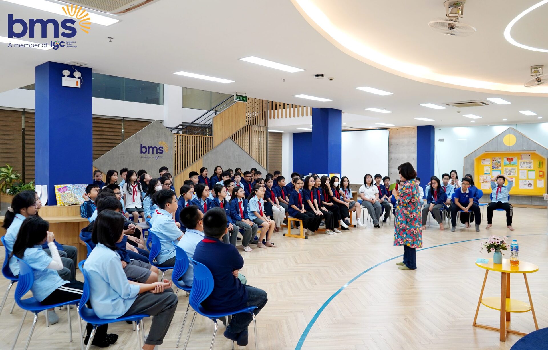 Trong buổi gặp gỡ và giao lưu cùng tác giả – diễn giả Nguyễn Thụy Anh với chủ đề “Sách vừa là thầy – Sách vừa là bạn”, các bạn học sinh BMS đã vô cùng hào hứng và tích cực tương tác trước các vấn đề mà cô Thụy Anh đưa ra.